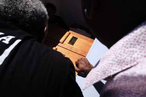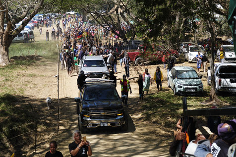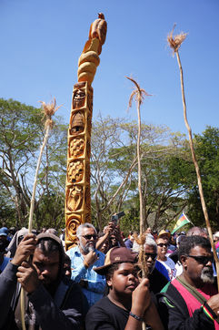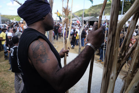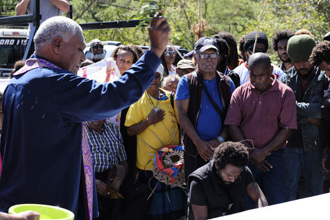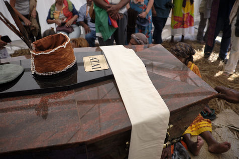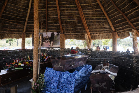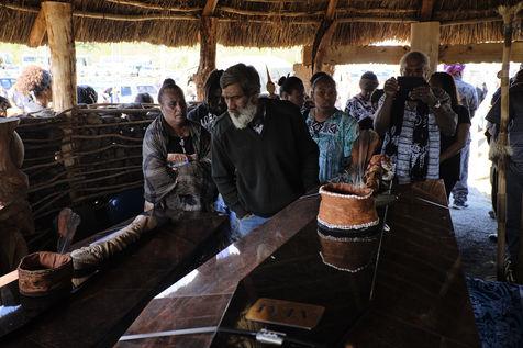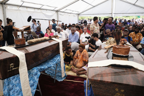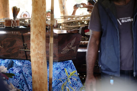 Nouvelle Caledonie, La Foa,mercredi 1er septembre 2021. Inhumation du grand chef Kanak Atai et de son Dao (« sorcier ») Meche sur le site de Wereha. Ils avaient été tués au combat contre les autorités coloniales françaises le 1er septembre 1878. Le crane d'Atai, leader de l'insurrection Kanak de 1878, et celui de son Dao (« sorcier »), avaient été rendus par l'Etat Français en 2014, après de longues années d'attente pour ses descendants.