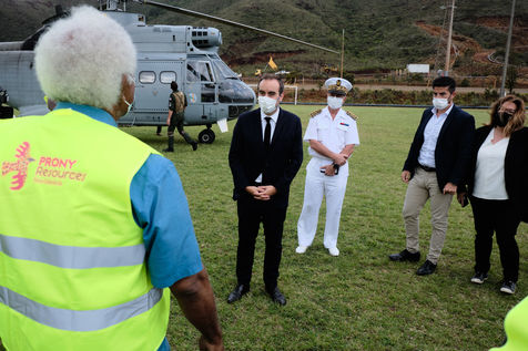 New Caledonia, Prony, Thursday, October 14, 2021. French overseas Minister Sébastien Lecornu is welcomed to the Prony Resources facilities. The French State is contributing 725 million euros to the development of the metallurgical site in the form of loans and tax deductions.