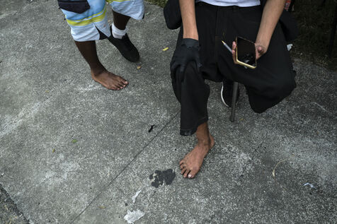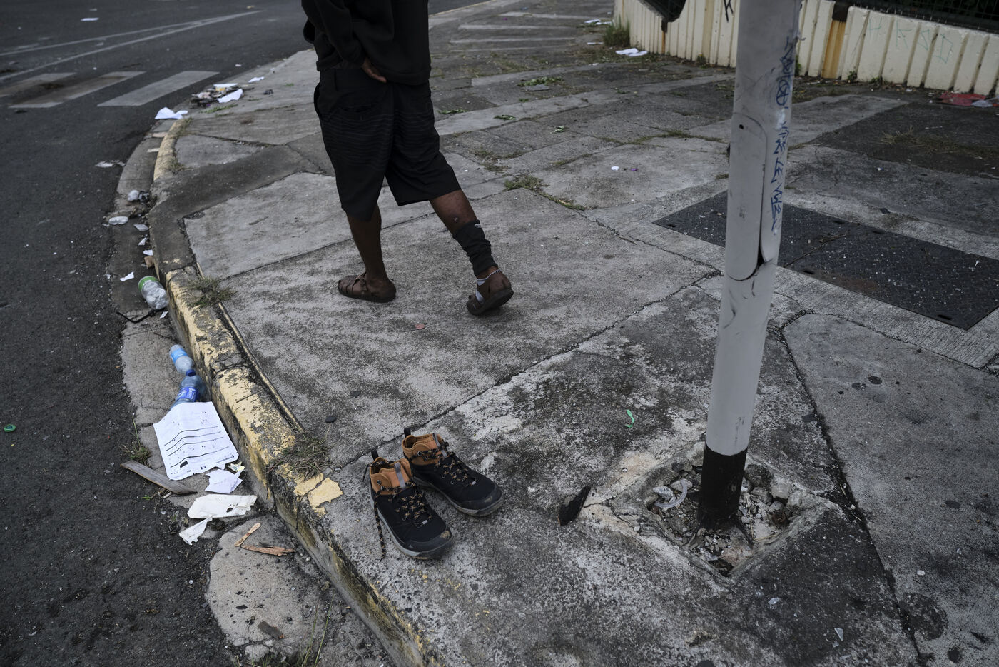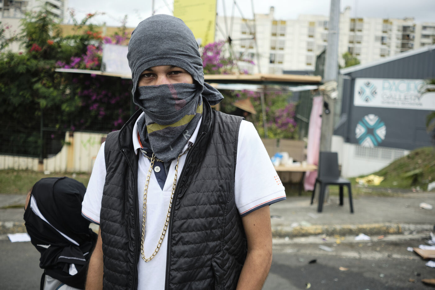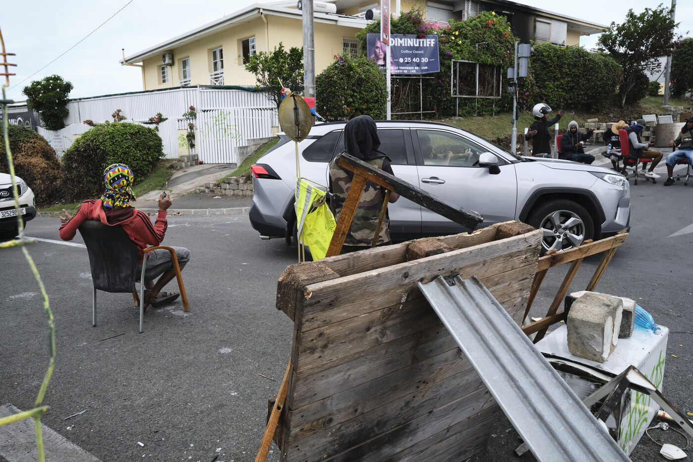 Dans le quartier de "Magenta Tours", ou l appaisement est palpable ces derniers jours, de jeunes independantistes ont remplace les barricades par des barrages filtrants et assurent la circulation, Noumea, Nouvelle Caledonie, mercredi 22 mai 2024. La revendication contre le degel du corps electoral se poursuit alors qu'Emmanuel Macron est attendu dans la nuit.