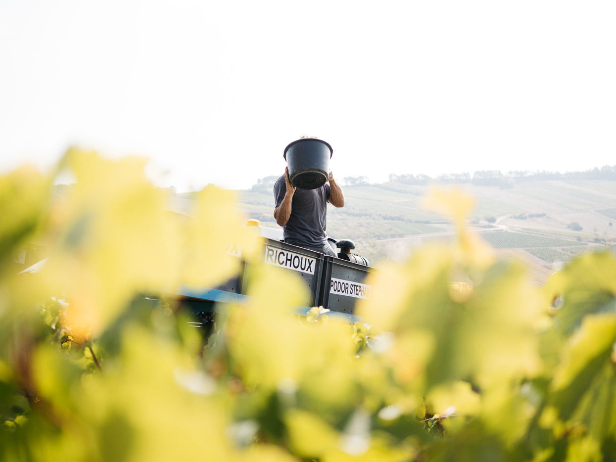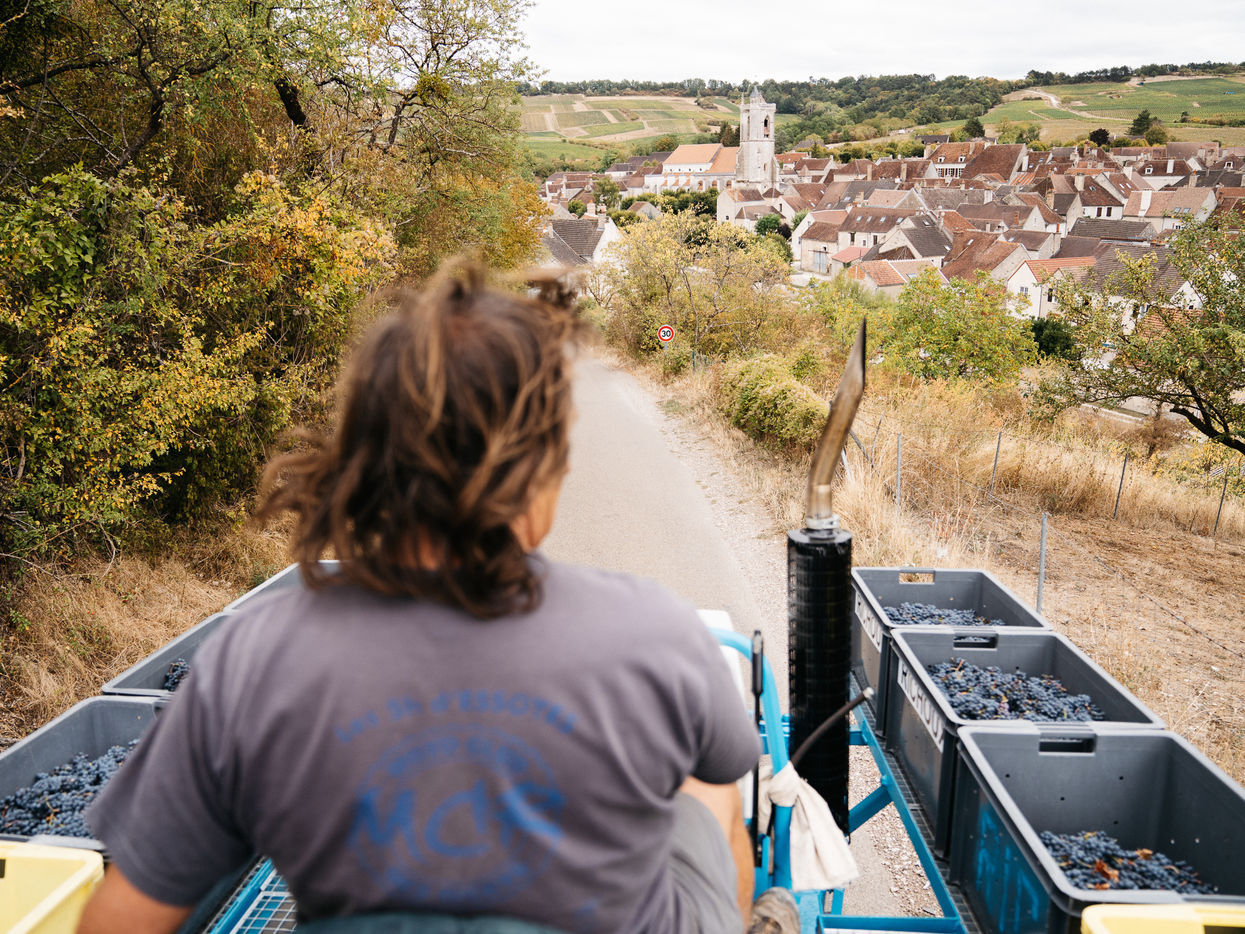In Irancy, Burgundy, the harvest is in full swing. We are in mid-September, and for two weeks, Thierry Richoux and his thirty grape harvesters will survey the vineyards daily to harvest his organic grapes.