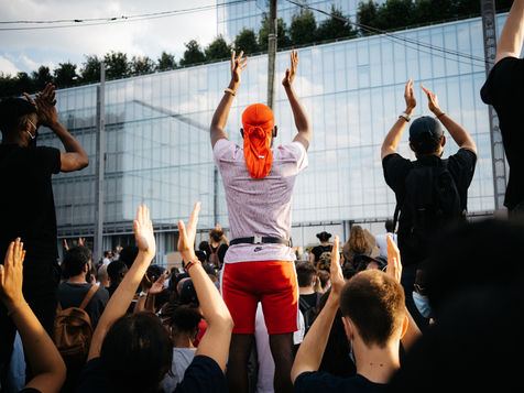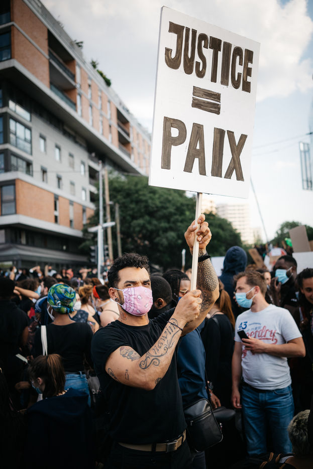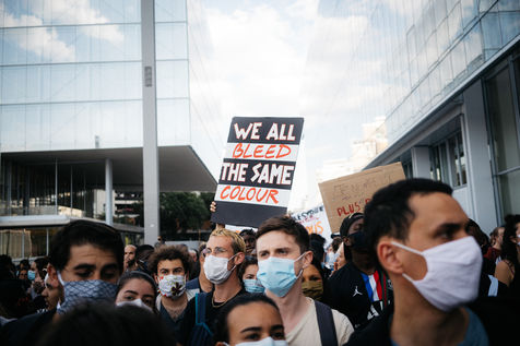 20 000 personnes rassemblées durant une manifestation dénonçant l'injustice, le racisme et les violences policières suite à l'appel d'Assa Traoré et le comité "Justice pour Adama", organisée devant le Palais de Justice à Paris le mardi 3 juin 2020 lors du #blackoutuesday. Ce rassemblement rend également hommage à George Floyd mort récemment aux Etats-Unis et toutes les victimes des violences policières.