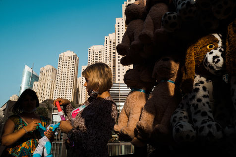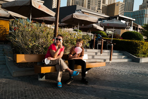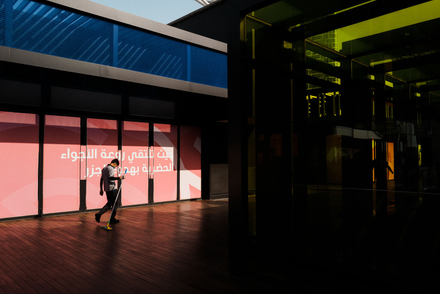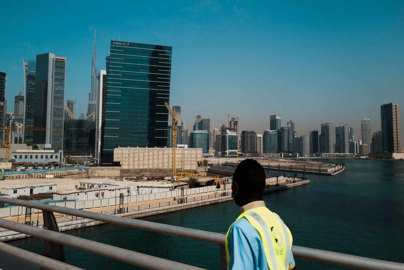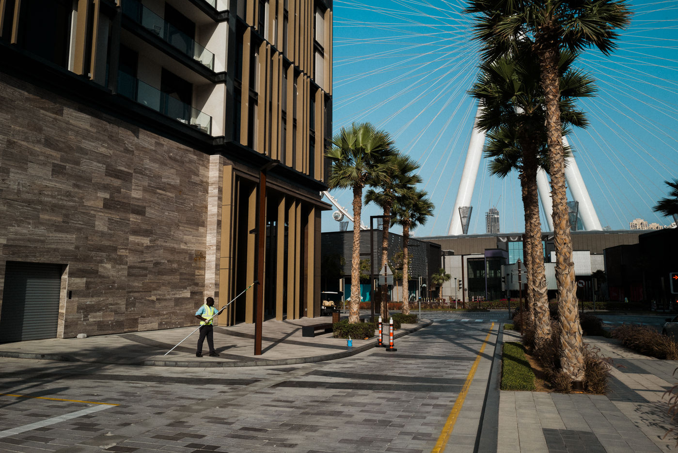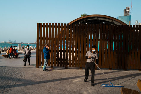Si quelques privilégiés font le voyage, les complexes touristiques restent toutefois majoritairement déserts. Les journées sont rythmées aux sons de ses innombrables chantiers. Et Dubaï devient un grand parc d'attraction vidé de ses acteurs. Seuls une armée de gardes de sécurité et de personnels de nettoyage se tuent à la tâche pour garder propre une ville sillonnée par les livreurs Deliveroo.