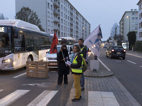 Nantes, mardi 21 mars 2023, dans le cadre de lma mobilisation contre la réforme des retraites, opération ville morte à Nantes. Blocages en centre ville par les personnels de l'éducation nationale, blocage de la rocade par les étudiants, réunion intersyndicale.