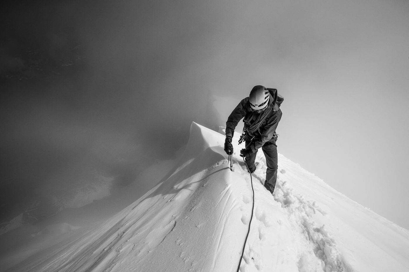 If this question arises for the mountaineer, it is also true for the photographer who is roped to these "conquerors of the useless." What about "mountain photography" in the field of photo journalism? Legitimacy? Inferiority complex ? The diverse and varied discourses on mountaineering all too often retain the deadly dimension of this "homicide alp" which caused generalist magazines to be sold in large numbers. The rest of the time is the playful dimension, the fun, the adrenaline. Yet another message is underlying.