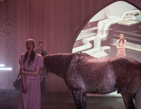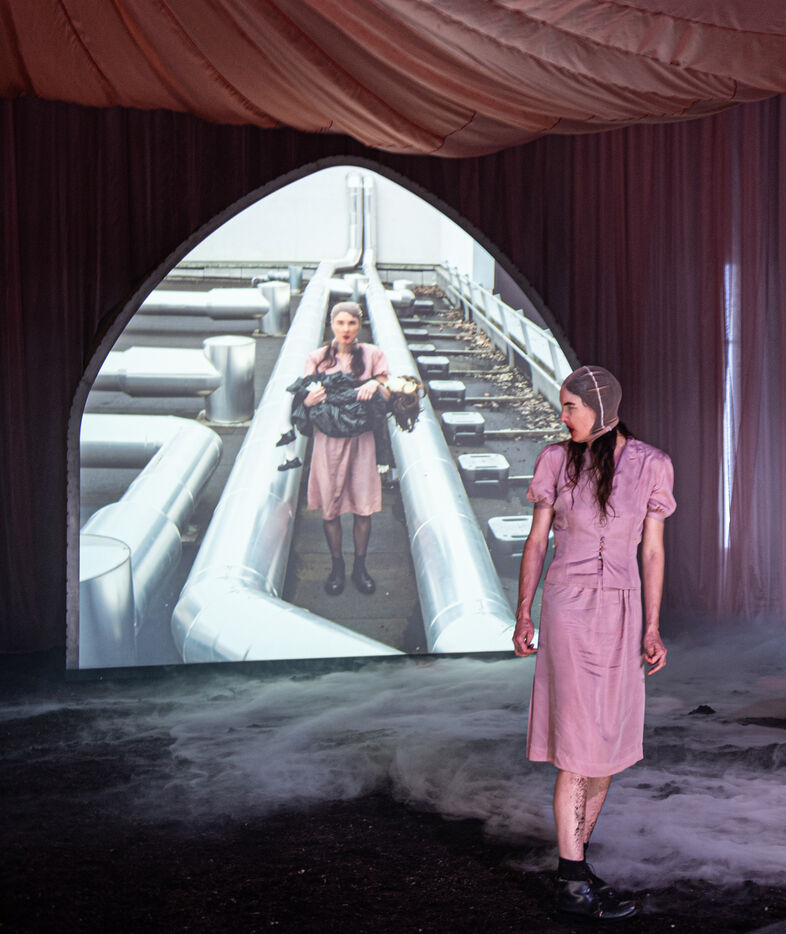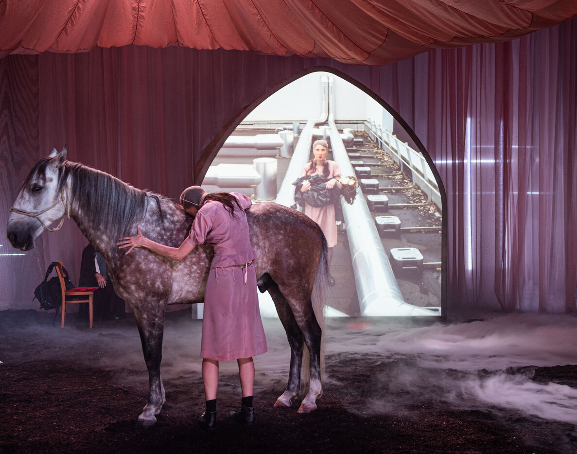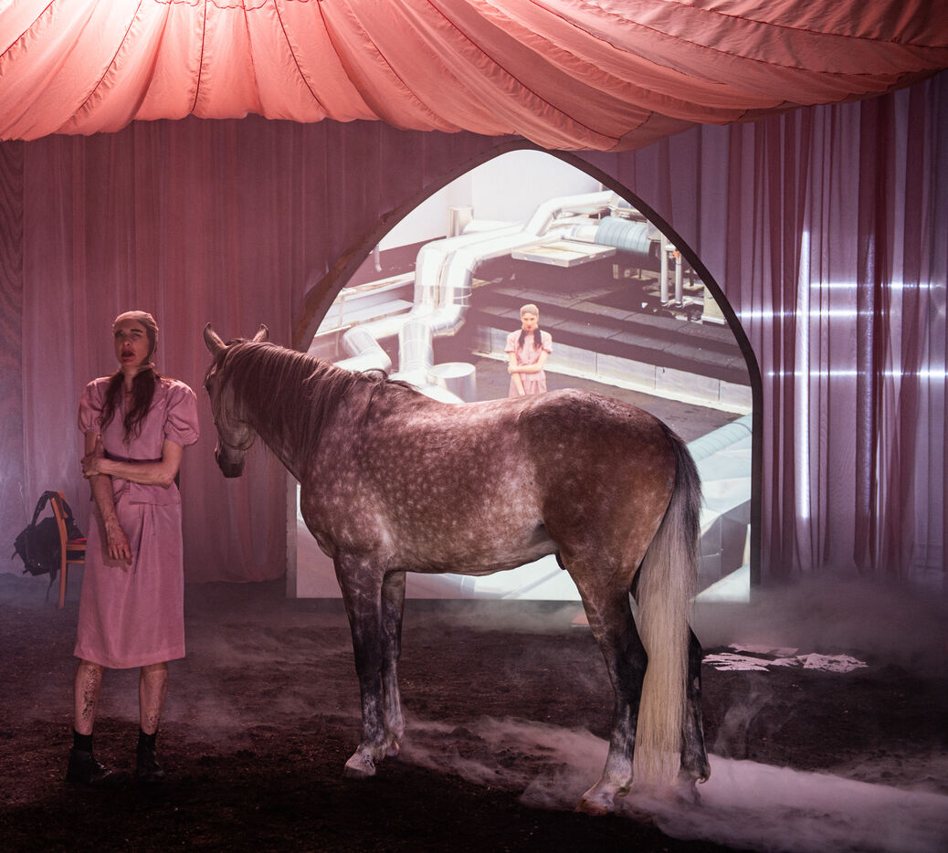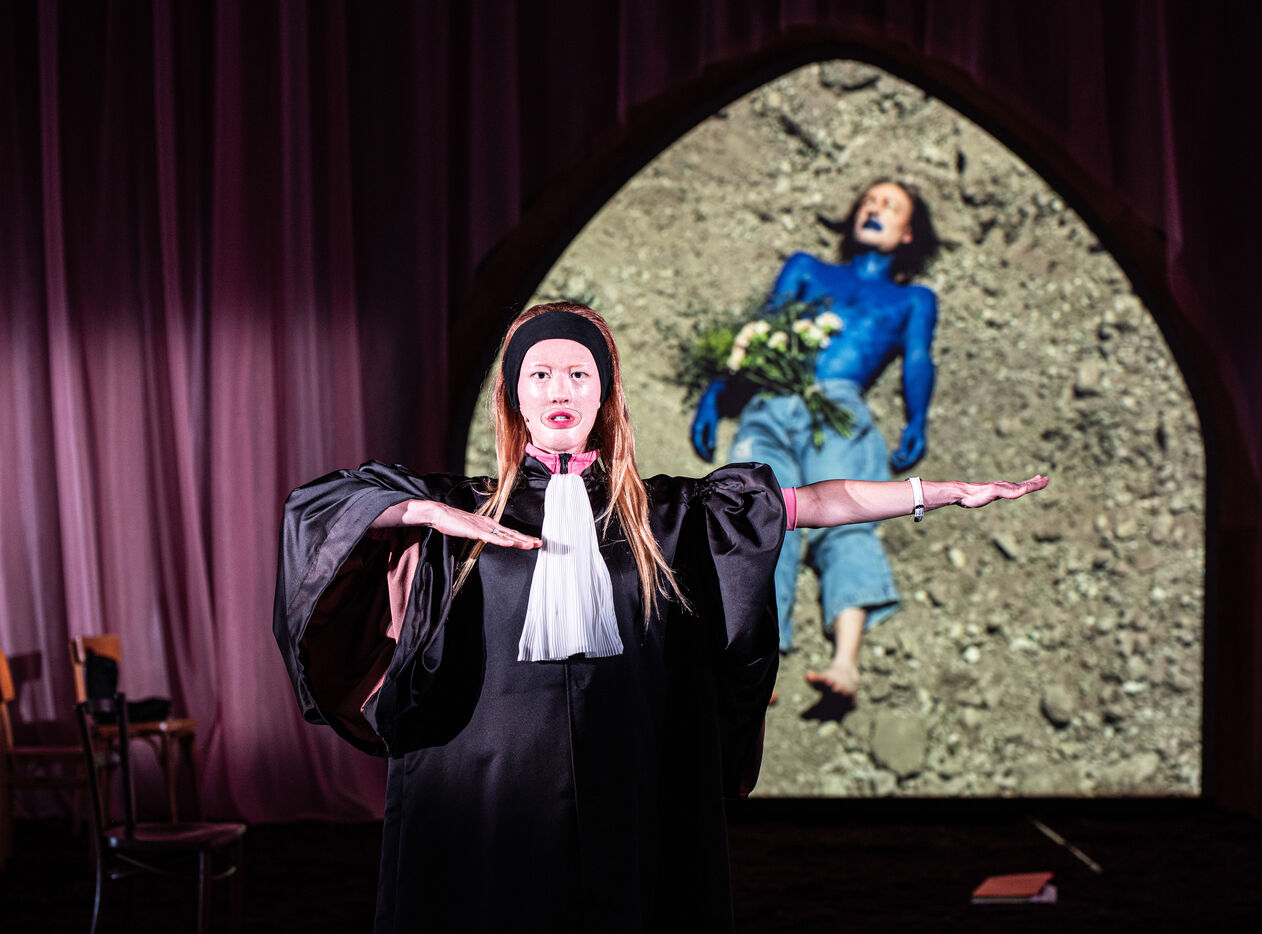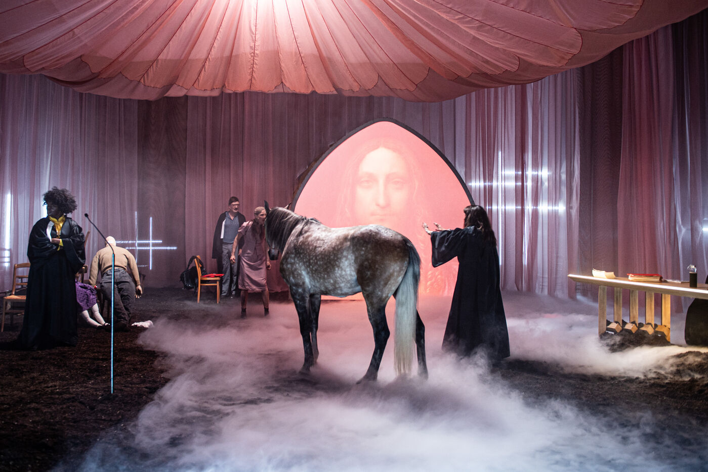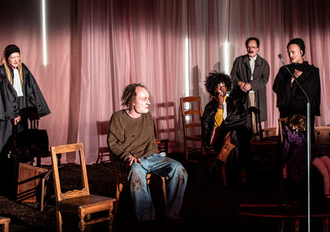 Created after a long immersion in the heart of the penal system, and particularly immediate appearance trials, Léviathan questions the fairness of institutional justice. Working with author Guillaume Poix, Lorraine de Sagazan draws inspiration from transformative justice and other alternatives to the traditional judge-punish-imprison model. Under a tent that serves as a makeshift courtroom, an echo to the installation presented at the Collection Lambert, Léviathan tries to understand—beyond good and evil—the ties between the legal system and the inequalities that govern our society, overturning certain obvious truths in the process. Through the biblical figure of the Leviathan, the show confronts us with violence and its regulation by law, asking this crucial question: who is the monster?