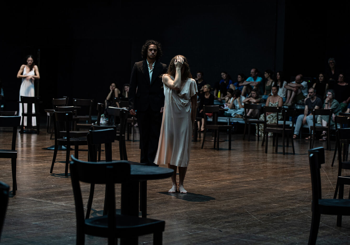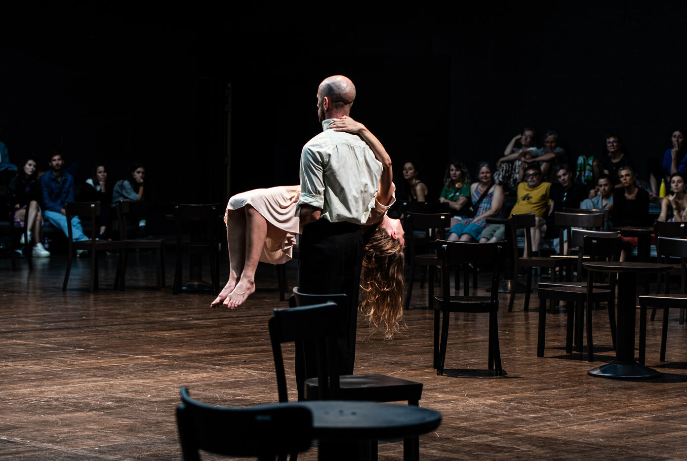 It was while attending the rehearsals of Café Müller that Boris Charmatz had the idea for Forever. The new artistic director of Tanztheater Wuppertal wanted to convey the ever-renewed emotion of Pina Bausch’s legendary piece, which seems to have begun before the audience arrived and continued after it left. He imagined this choreographic installation that spectators would visit. For seven hours, twenty-five performers take turns to perform Café Müller, alternating with interludes – words from authors or performers influenced by Pina Bausch’s work… The device allows the audience to multiply points of view, generating new perspectives and new sensations like so many possible shows. Forever is endless: the dance continues forever and ever.