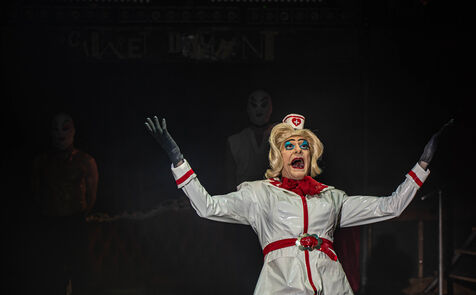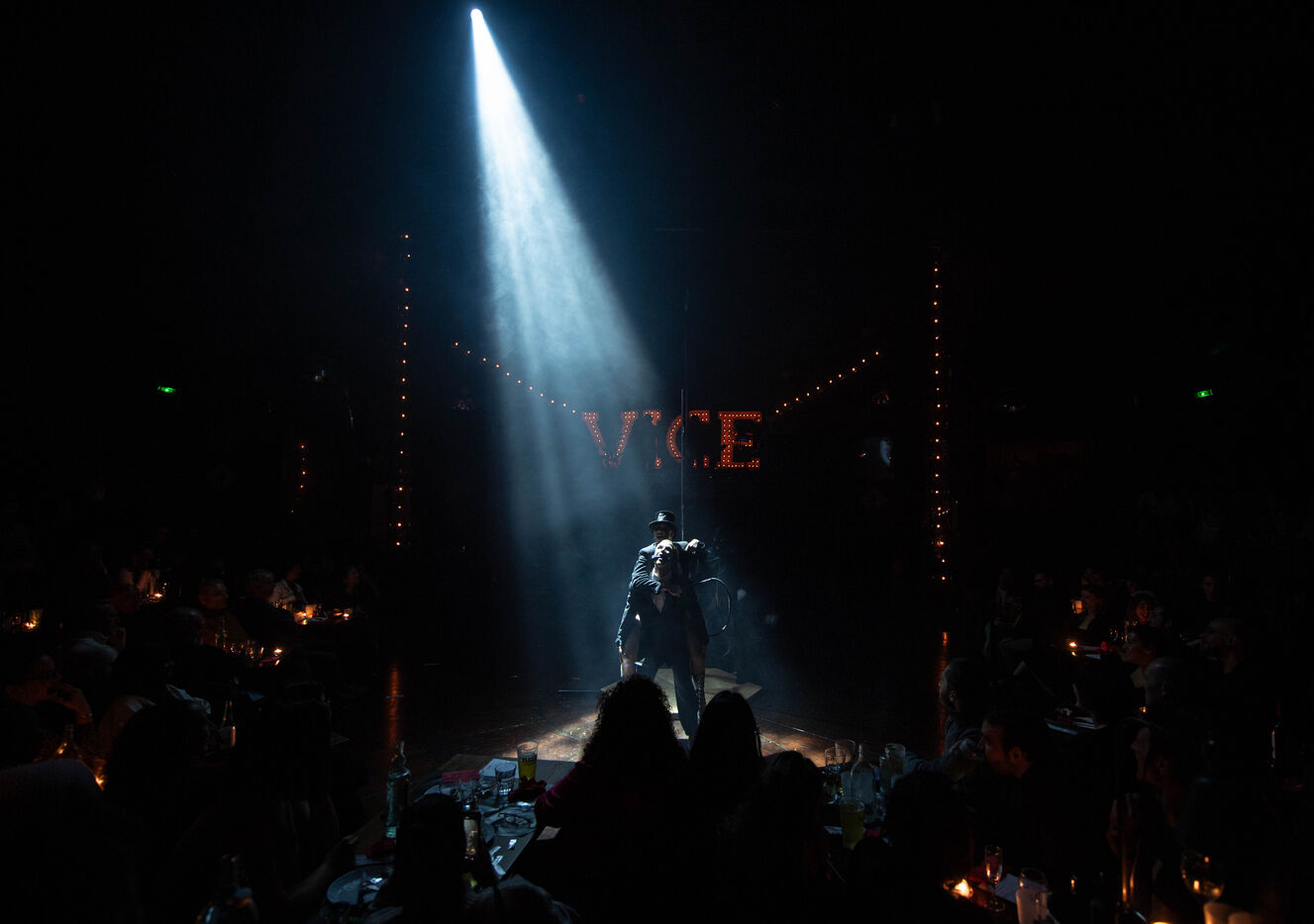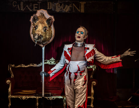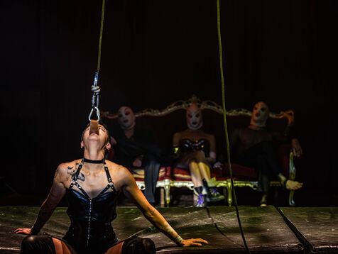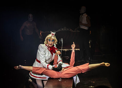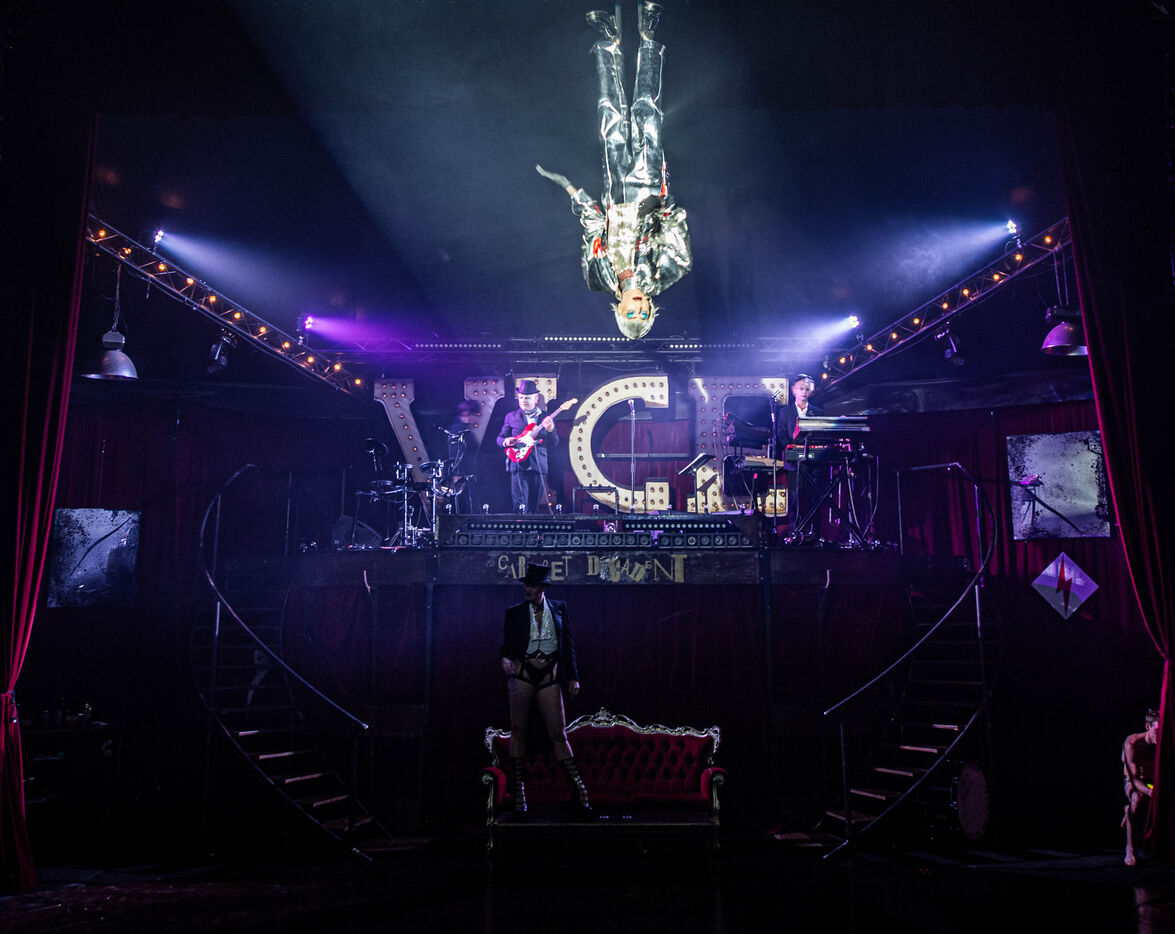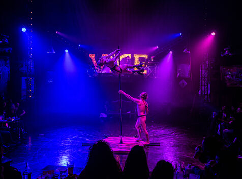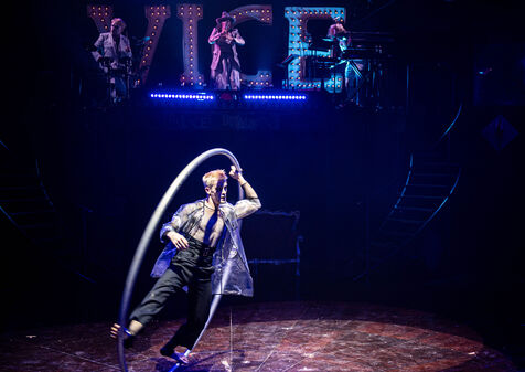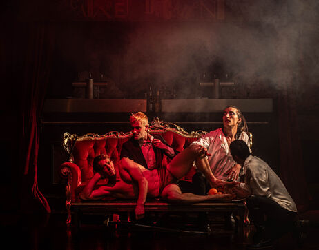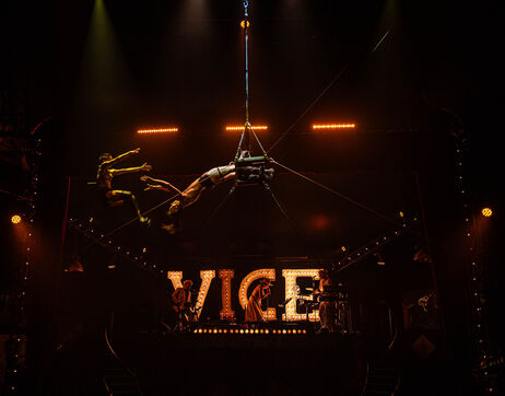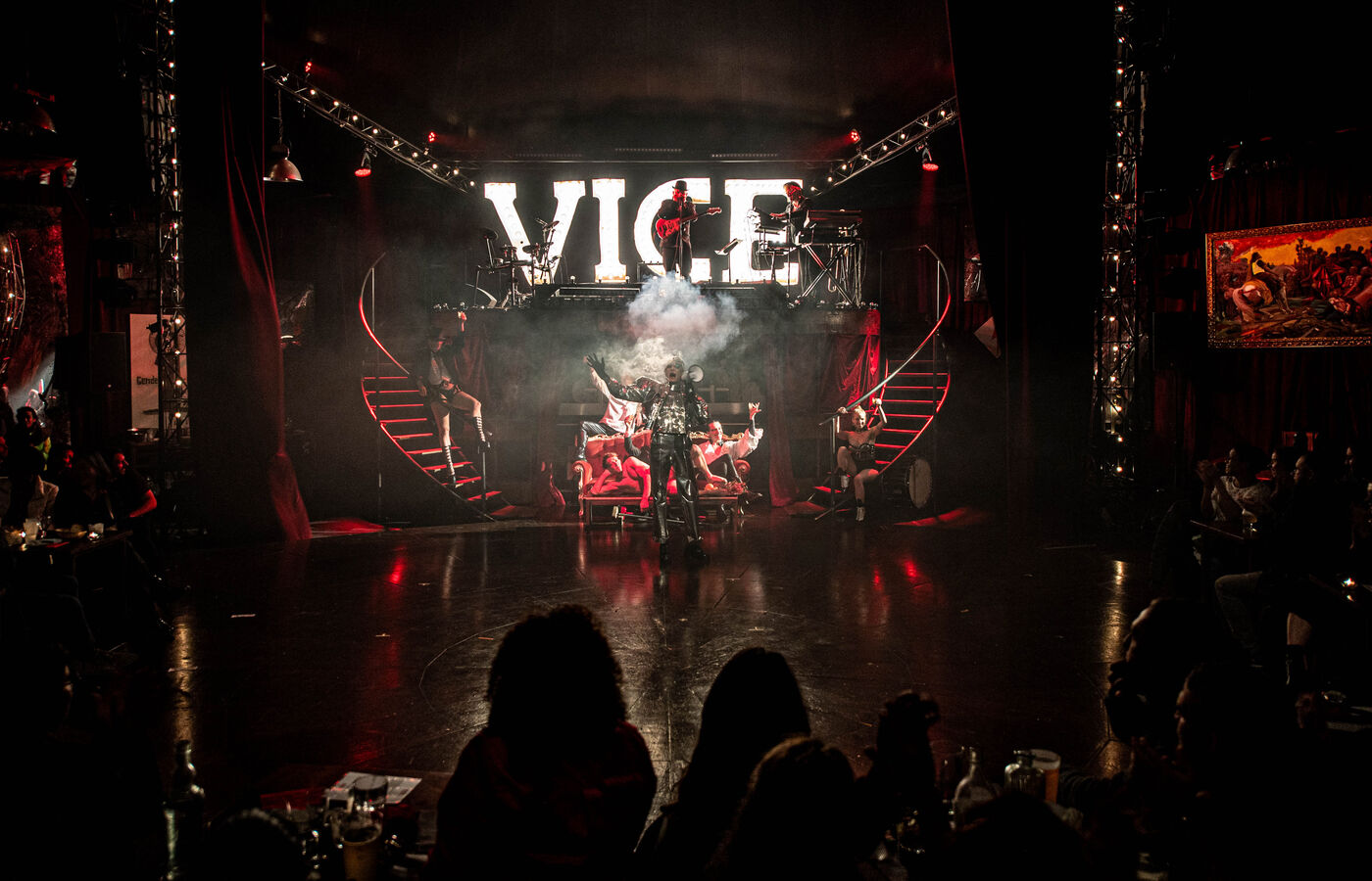 CABARET DÉCADENT, REVUE ÉLECTRIQUE N°777 VICE, Dans une ambiance de soufre et de sueur, hammam de boîte de nuit, vapeurs et fumée noire, les langues se délient, speakeasy, les corps se liquéfient, techno crade et saturée, une boule à facettes dans le ventre, reprendre son souffle, le vice est à vos portes. Pouvoir, luxure, argent, poisons d’une époque damnée. Violence, feu, métal bouillant, venin des entrailles d’une société finissante et vérolée, personnages de Marvel trop maquillés. Danse debout, cri à genou, aboiements de chiens, claquettes sur cannettes, podium central atomique, electro-vice, tacatacatacatac, politique enrayée, déclamations poétiques. Cirque vulgaire et cabaret du pauvre : le bal des perdus. Maudits, déviants, monstres et paillettes, fête brouillonne, messe vaudoo, non pas de messe, juste du vin, des jeux, je suis sensuel(le), torrida, une electric ladyland, insolente liberté électrique.