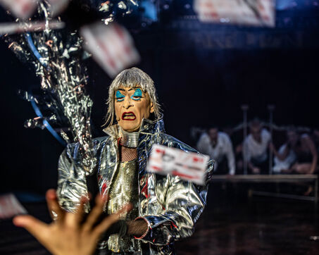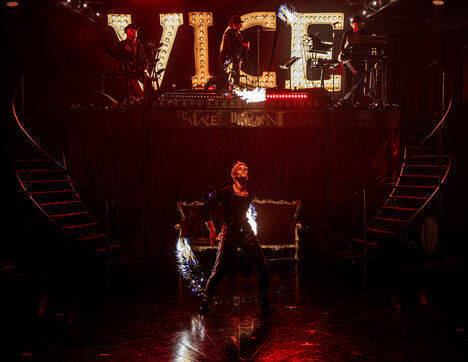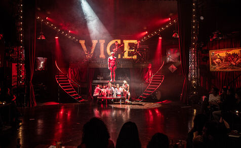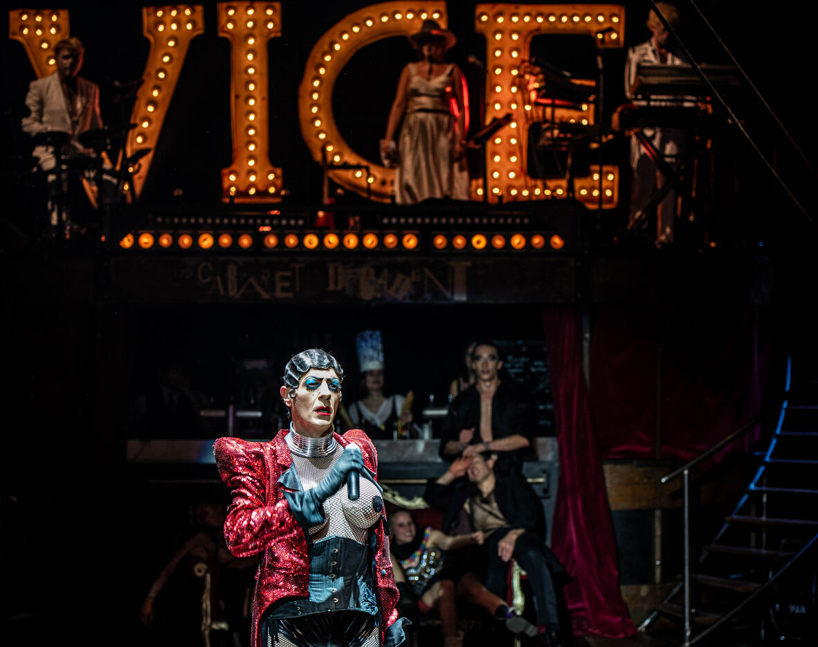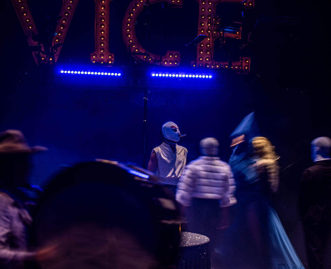 CABARET DÉCADENT, REVUE ÉLECTRIQUE N°777 VICE, an atmosphere of sulphur and sweat, nightclub hammam, fumes and black smoke, tongues loosen, speakeasy, bodies liquefy, dirty and saturated techno, a disco ball in the belly, catch your breath, vice is at your door. Power, lust, money, poisons of a damned era. Violence, fire, boiling metal, venom from the entrails of a dying and pockmarked society, overly made-up Marvel characters. Standing dance, kneeling screams, barking dogs, tap dancing on cans, central atomic podium, electro-vice, tacatacatacatac, politics blocked, poetic declamations. Vulgar circus and poor man's cabaret: the ball of the lost. Damned, deviants, monsters and glitter, messy party, voodoo mass, no mass, just wine, games, I am sensual, torrid, an electric ladyland, insolent electric freedom.