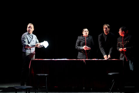 Le Révizor devient un terreau d’exploration pour questionner des sujets éminemment contemporains : la déshumanisation, la montée du fascisme, la lutte pour la liberté. Il ne s’agit pas d’apporter des réponses arrêtées mais de se questionner activement sur notre condition humaine et ce qu’on décide - ou non - d’en faire.