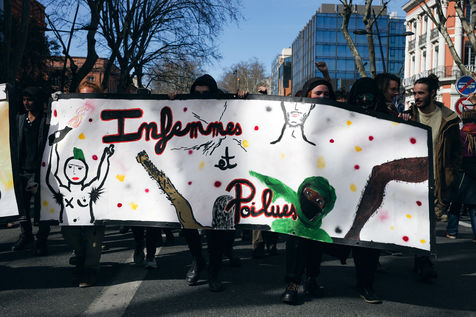 On March 8, International Women's Rights Day, nearly 1,500 people marched through the streets of Toulouse. Calling for equality of rights between the sexes, an end to sexism, harassment and the release of women arbitrarily imprisoned in the world, the procession was filled with signs with evocative slogans.