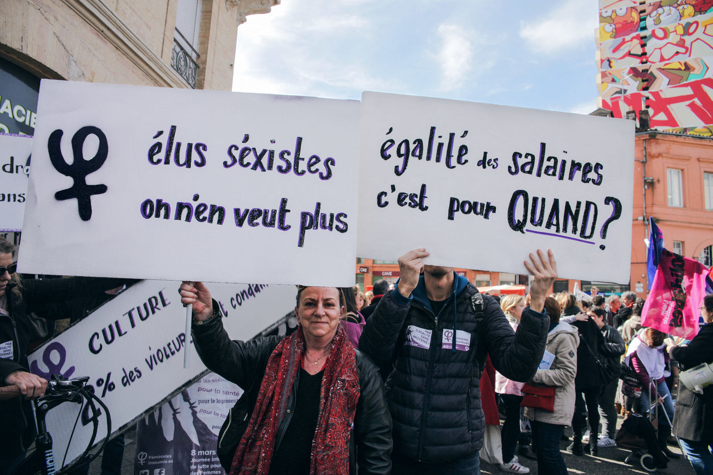 Lors de la journée internationale des droits des femmes, le 8 mars, près de 1 500 personnes ont défilé dans les rues de Toulouse. Réclamant l'égalité des droits entre les sexes, la fin du sexisme, du harcèlement, ou encore la libération des femmes emprisonnées arbitrairement dans le monde, le cortège était rempli de pancartes aux slogans évocateurs.