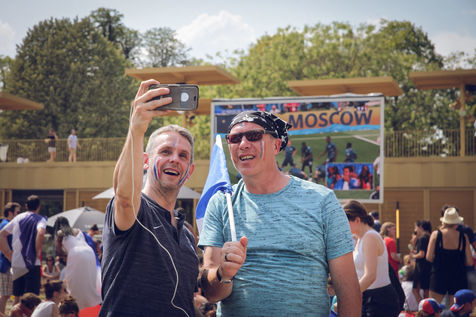 Paris, 15 July, 2018. Thousands of fans are gathered to watch the football World Cup final. France won the trophy for the second time in its history and its fans were thrilled. Scenes of joy in Paris.