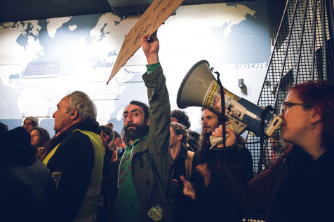 Toulouse, 16 January 2018. About 50 yellow vests and members of the "Y'a pas d'arrangement" collective broke into the Starbucks Café on Wilson Place in the evening. The action was intended to denounce the company's failure to pay taxes in France.
