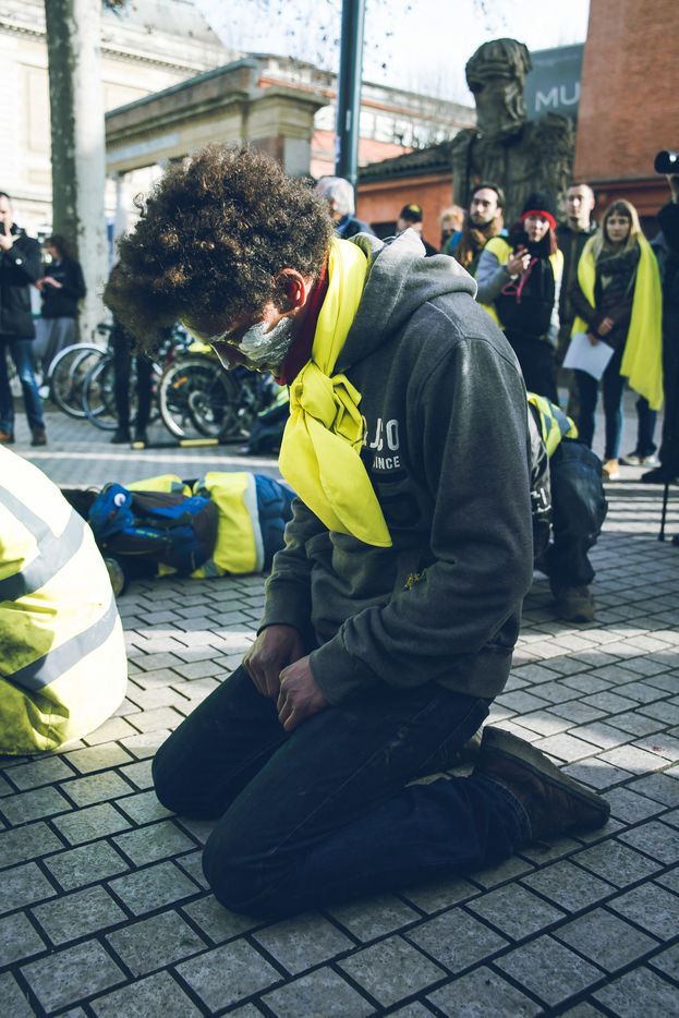 Toulouse, January 18, 2019. Some 20 yellow vests have demonstrated to denounce police violence since the yellow vest movement began in November 2018. They paid tribute to the many injured during the demonstrations.