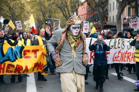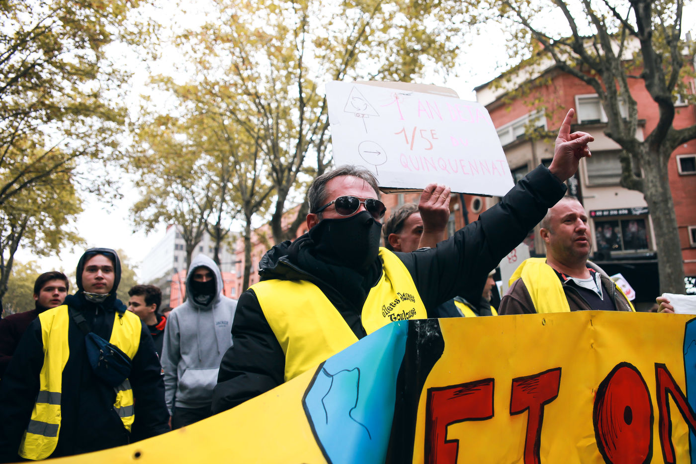 Environ 2 000 personnes ont manifesté à Toulouse à l'occasion du premier anniversaire de la mobilisation des gilets jaunes. La manifestation a rapidement été stoppée par les forces de l'ordre. À Toulouse, le 16 novembre 2019.