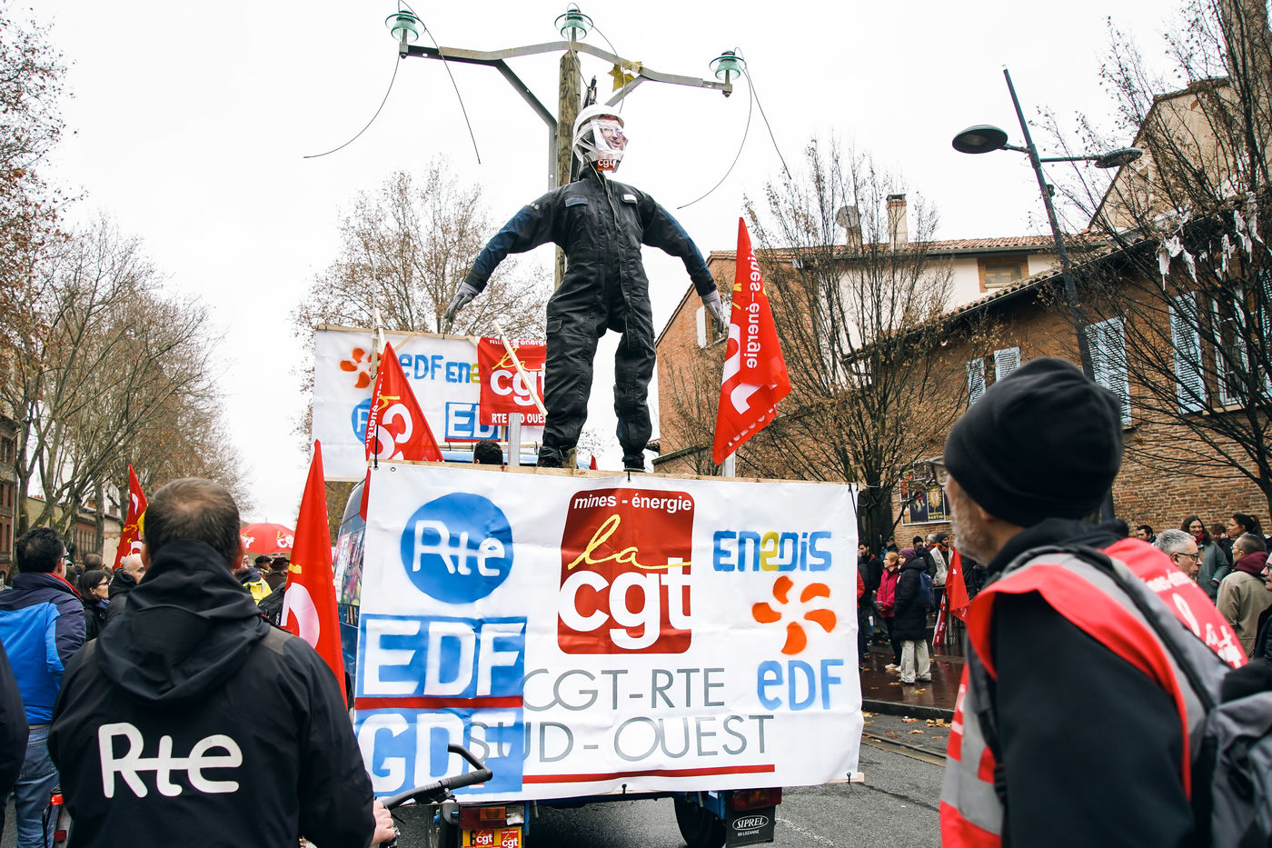 Plusieurs milliers de personnes ont défilé à Toulouse contre la réforme des retraites, pour la 3e fois en une semaine. Le 12 décembre 2019, à Toulouse.