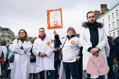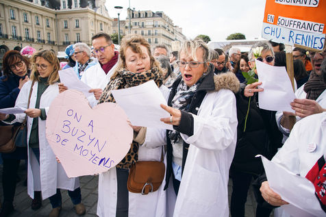 Around 200 staff from the Rennes University Hospital gathered on Friday 14 February at 1 p.m. at Place de la République. A festive event with songs, flowers and cardboard hearts to declare their flame at the public hospital.Ren
