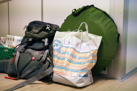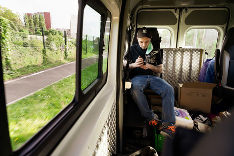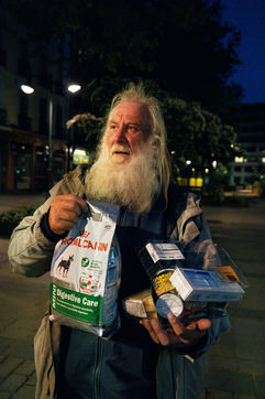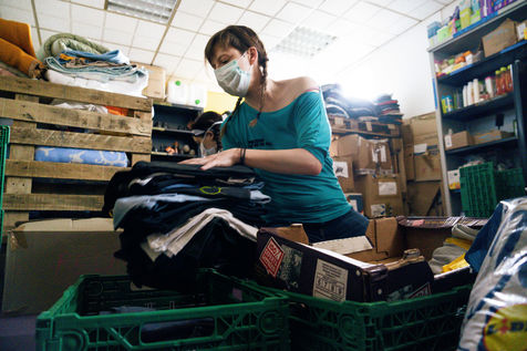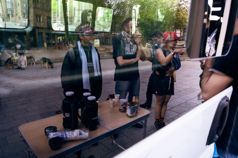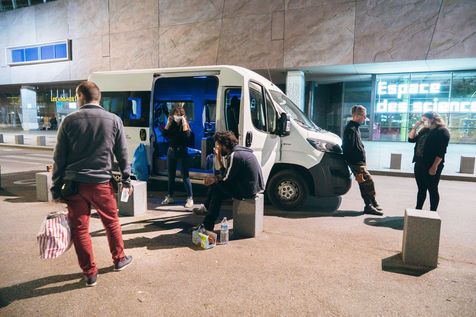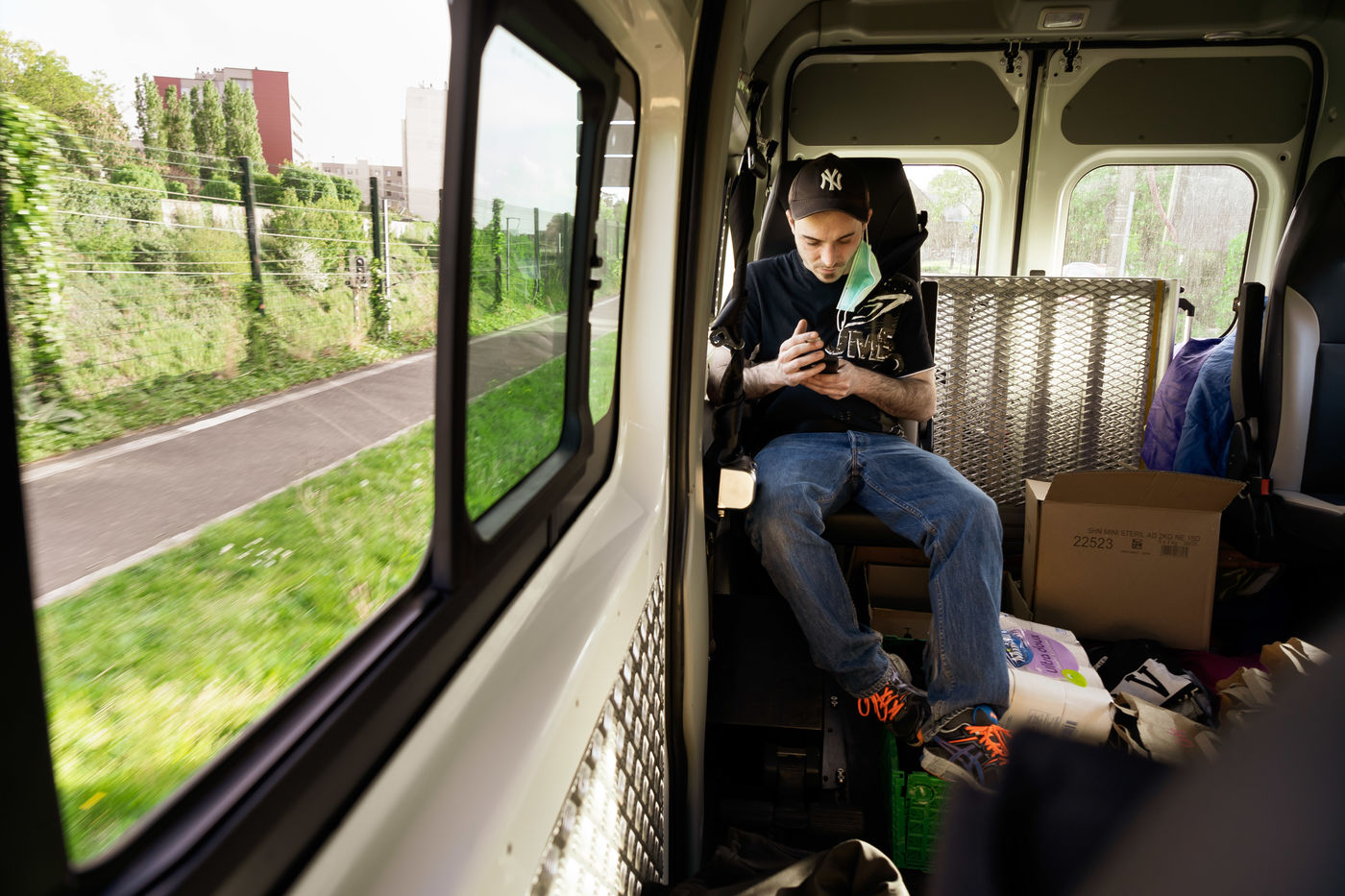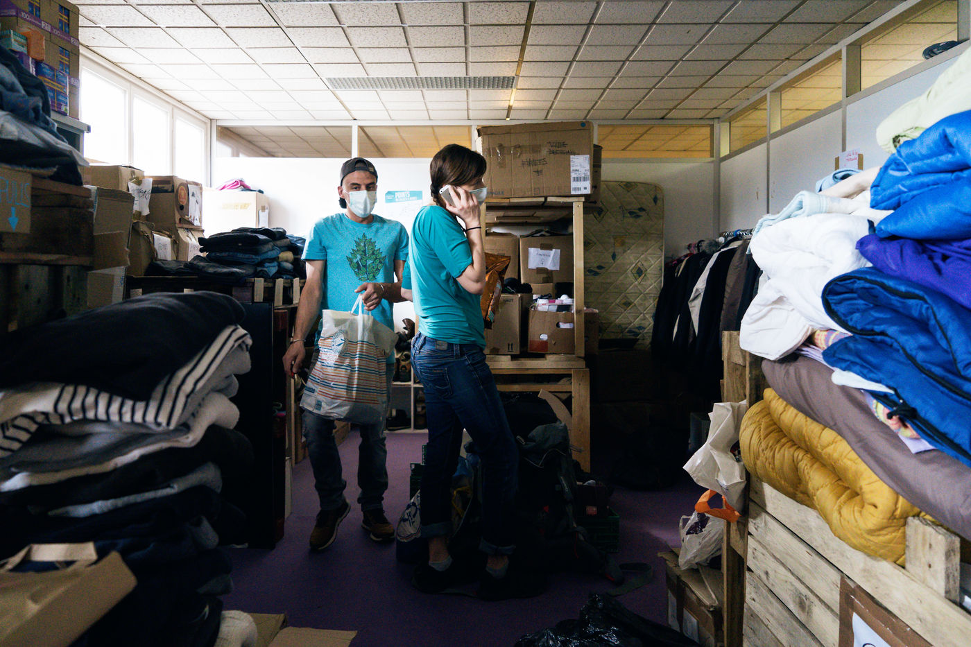 Since the beginning of the confinement on 17 March 2020, the Rennes branch of the Utopia 56 association has been touring the city of Rennes three times a week to bring food aid, hygiene products and company to those living on the streets. Series produced on 16 April 2020, in Rennes.