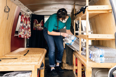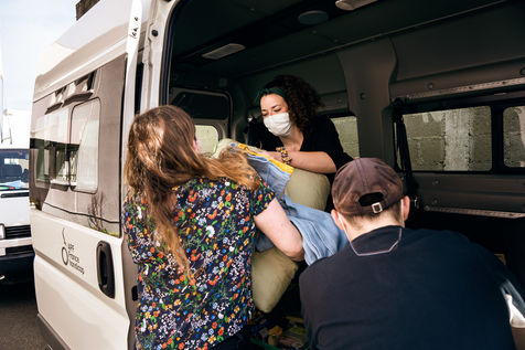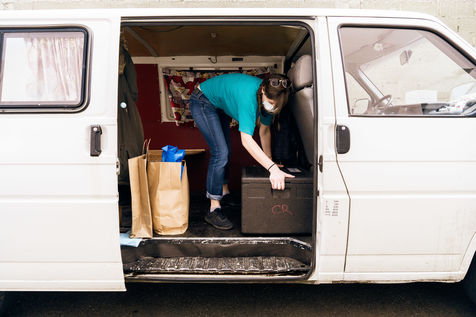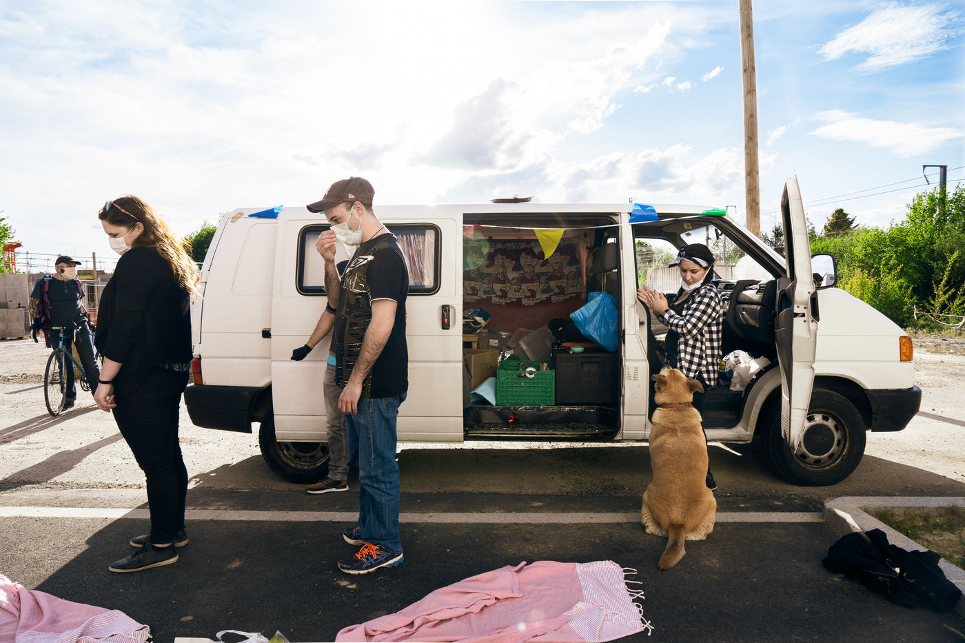 Depuis le début du confinement le 17 mars 2020, l'antenne rennaise de l'association Utopia 56 tourne dans la ville de Rennes trois fois par semaine pour apporter une aide alimentaire, des produits d'hygiène ainsi que de la compagnie à celles et ceux qui vivent dans la rue. Série réalisée le 16 avril 2020, à Rennes.