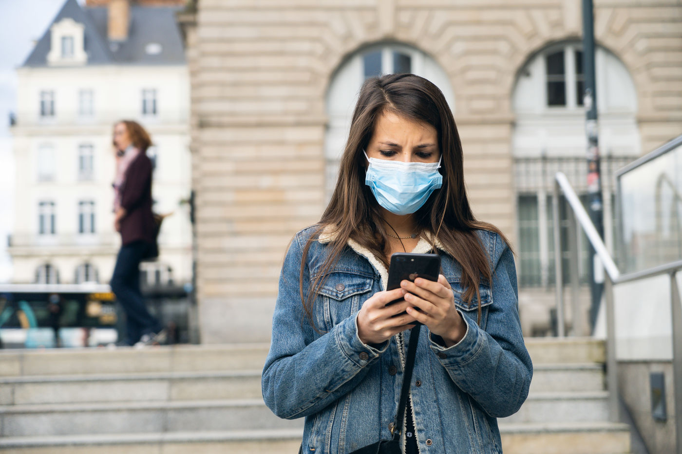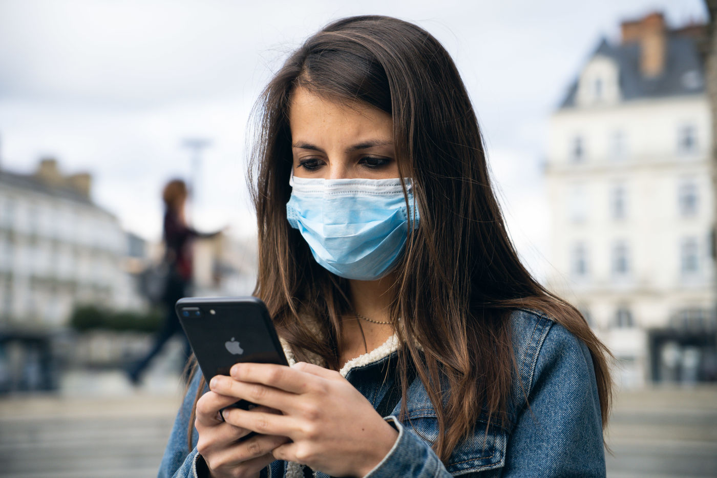 Illustration of daily life in times of deconfinement: tracing by smartphone applications, barrier gestures, or even closed department stores. In Rennes, April 2020.