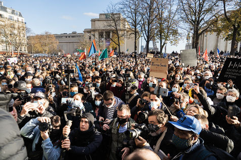 Several thousand people demonstrated on the human rights forecourt at the Trocadéro in Paris on Saturday, November 21, 2020 to protest against the so-called "Global Security" bill.