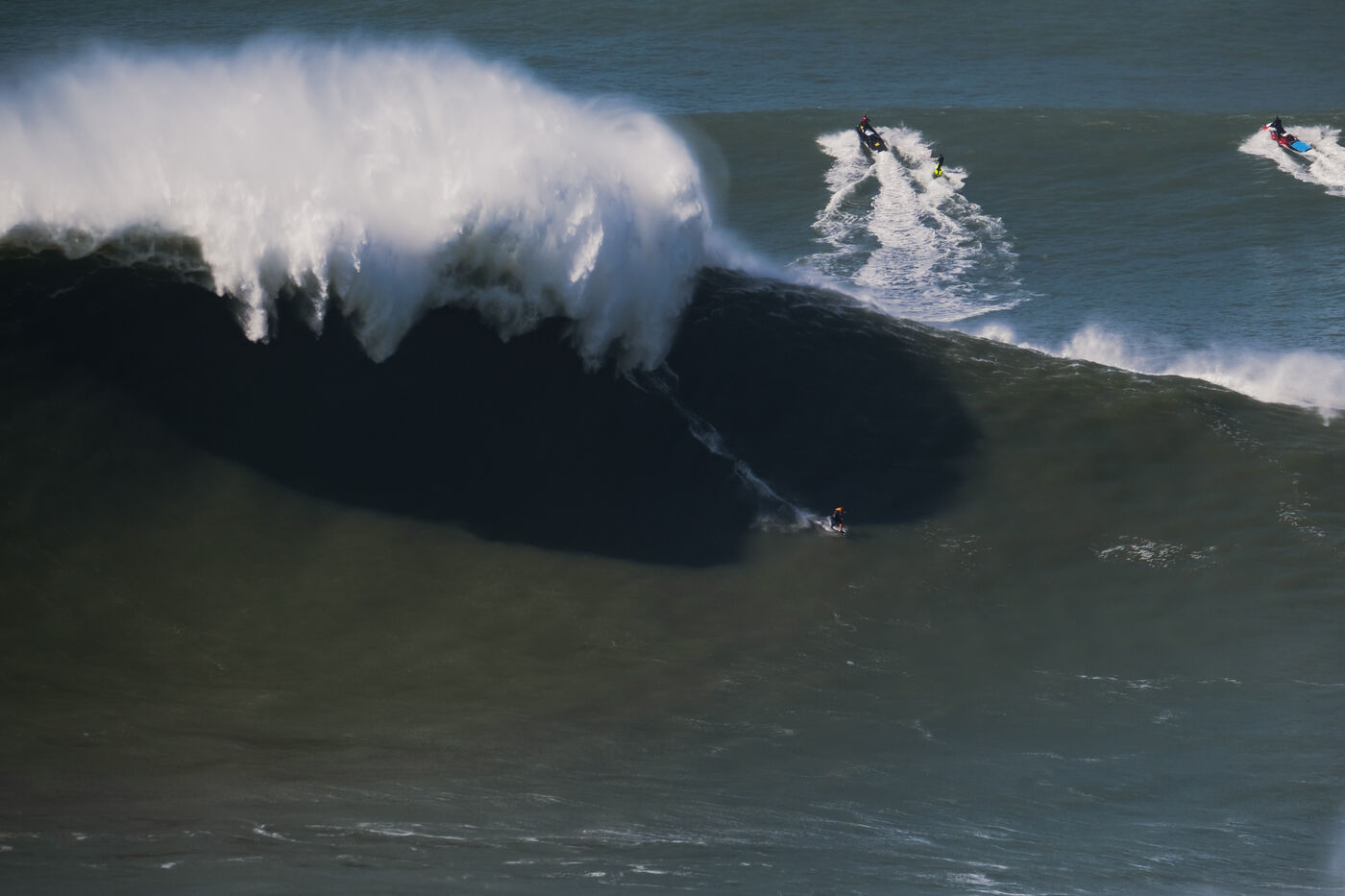 A Nazaré, au Portugal, déferle la plus grosse vague du monde. Popularisée par le surfeur professionnel Garett Mc Namara en 2011 lorsqu'il avait battu le record de la plus haute vague jamais surfée, ce village est désormais connu dans le monde entier. Depuis toujours, ce lieu a vécu au rythme des vagues. Dans le port, les jours de grandes houles, les jet-skis se mêlent avec les chalutiers. Vêtus de leurs combinaisons modernes, la silhouette des surfeurs se distingue de celle des pêcheurs.