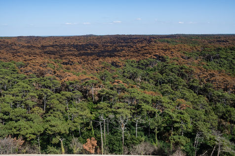 Dune du pilat, Gironde, 27 Juillet 2022. Après le feu de La teste de buch qui a gravement affecté le massif forestier, la dune du pilat est de nouveau accessible par convois de bus.