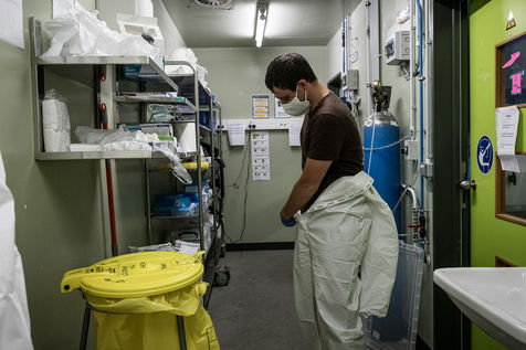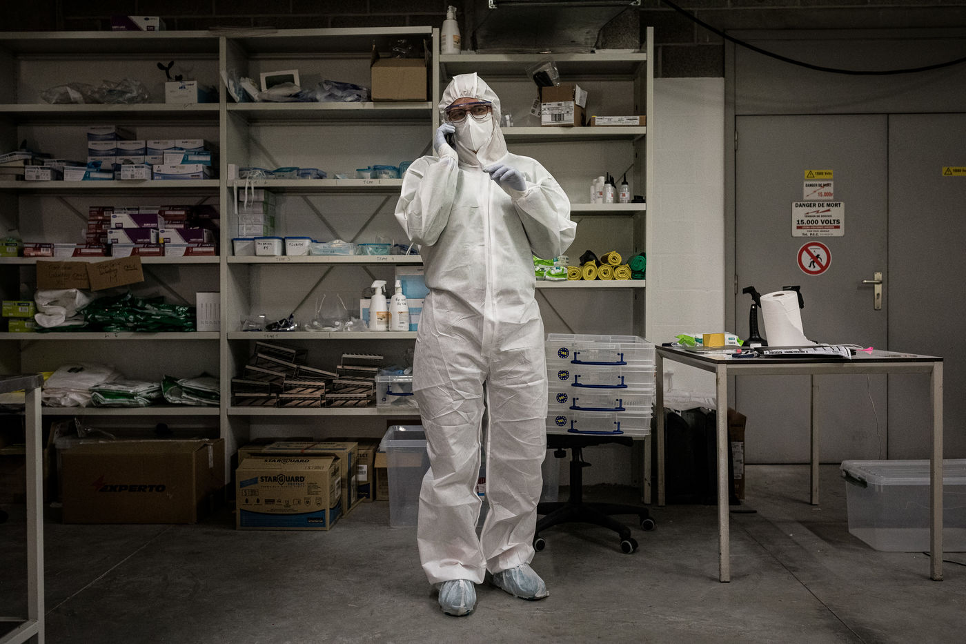 Ici, mesures extrêmement strictes pour y travailler. Certains volontaires portent même des combinaisons avec respirateurs.