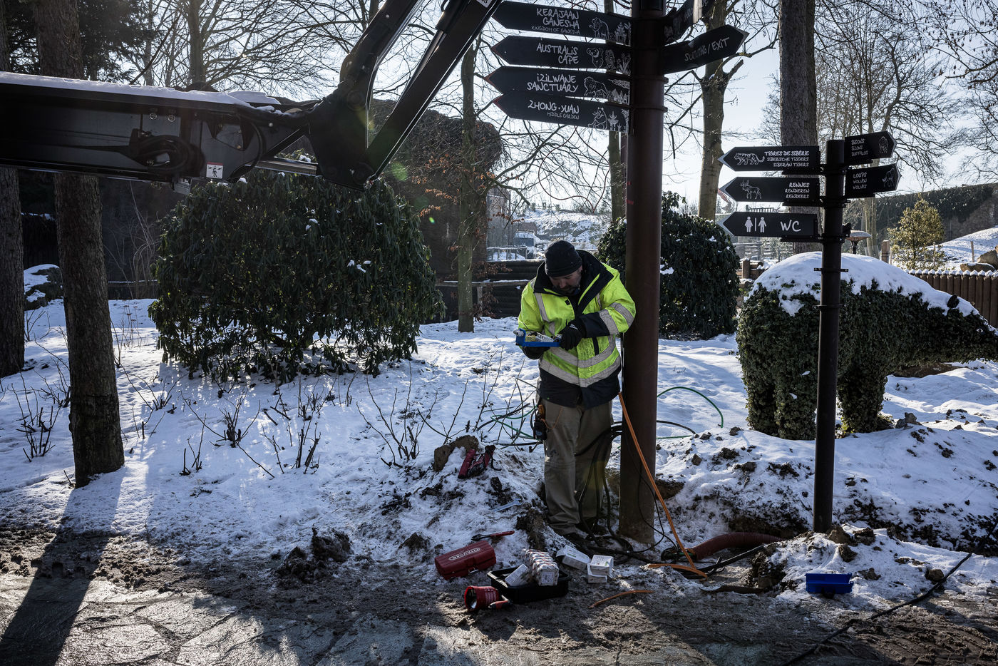 Brugelette, Belgium. February 11, 2021. Preparations are well underway for the reopening of the Pairi Daiza Animal Park on Saturday, February 13, after it has been closed for several months due to the Covid19 pandemic.