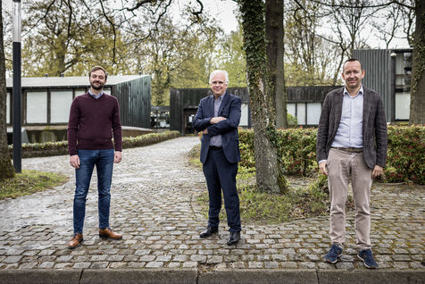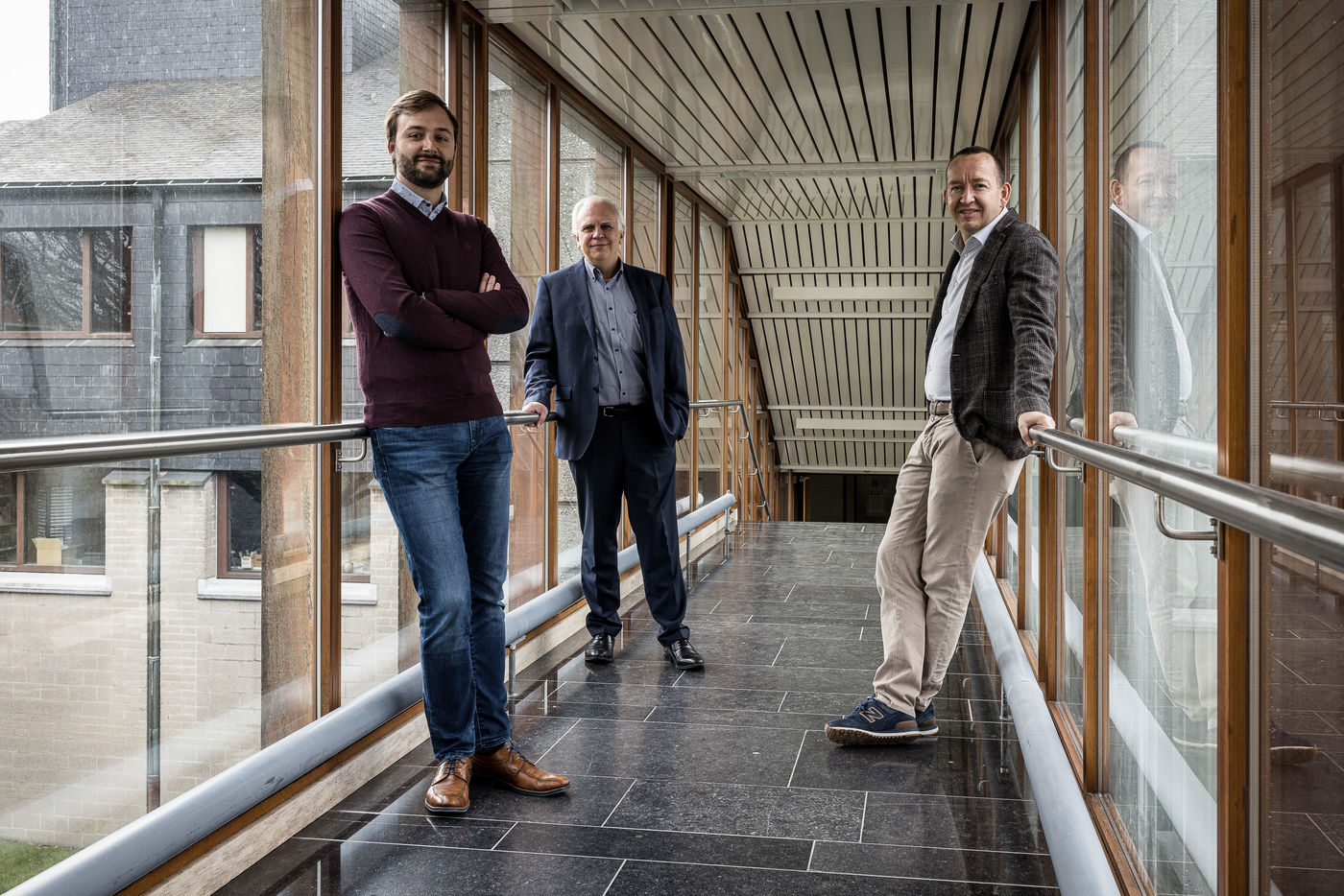 Angleur, Belgium. 2021-05-04. Portrait of Damien Ernst, Quentin Gemine and Charles Delhaye from Blacklight Analytics at ULiege.