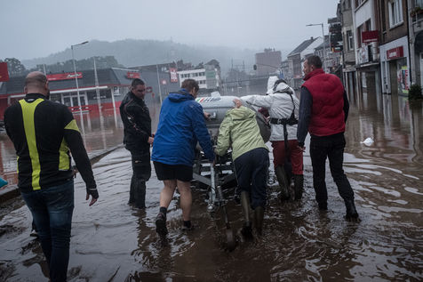 Announced since July 14 in the evening, the major floods reached the city of Liege. The Meuse threatened to flood the city center. The governor of the Province asked the inhabitants to evacuate the city if they could or to take refuge in the upper floors of the houses. The communes of Chênée and Angleur were also heavily affected by the flash floods of the Ourthe and the Vesdre.
