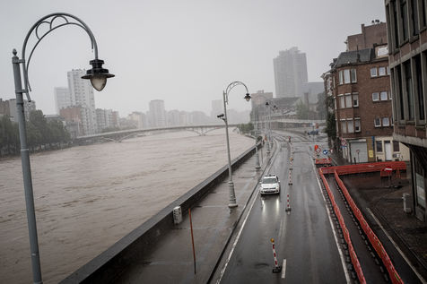 Belgique, les crues de la Meuse menacent le centre ville de Liège