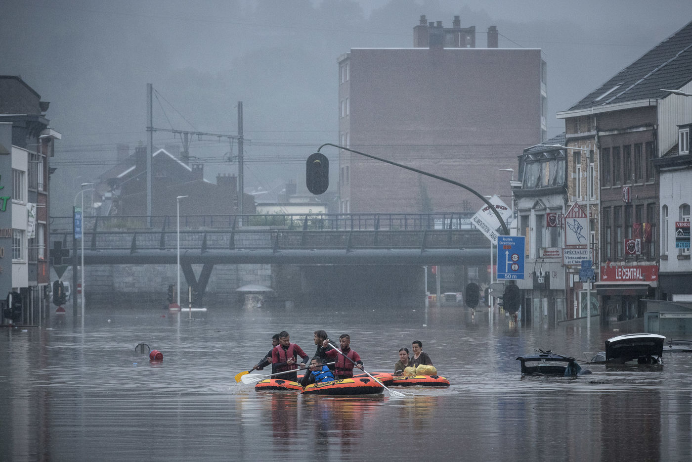 Annoncées depuis le 14 Juillet en soirée, les crues importantes atteignent la ville de Liège. La Meuse menace de sortir de son lit et d'inonder le centre ville. Le gouverneur de la Province demande aux habitants d'évacuer la ville si ils le peuvent ou de se réfugier aux étages supérieurs des maisons. Les communes de Chênée et Angleur sont également lourdement touchées par les crues soudaines de l'Ourthe et la Vesdre.