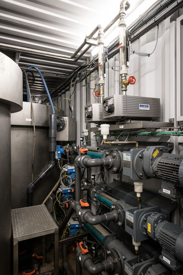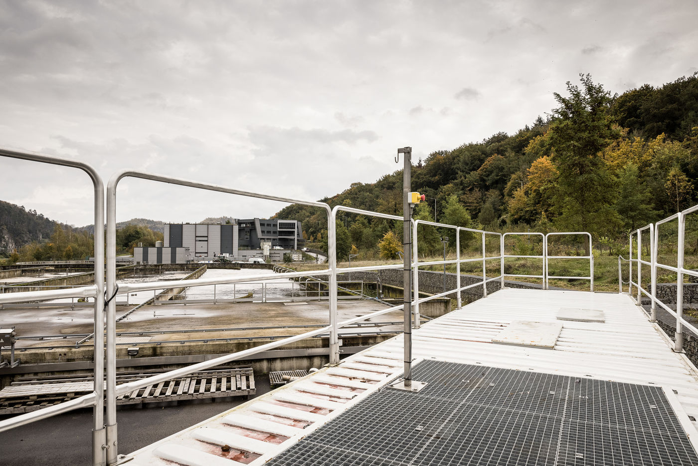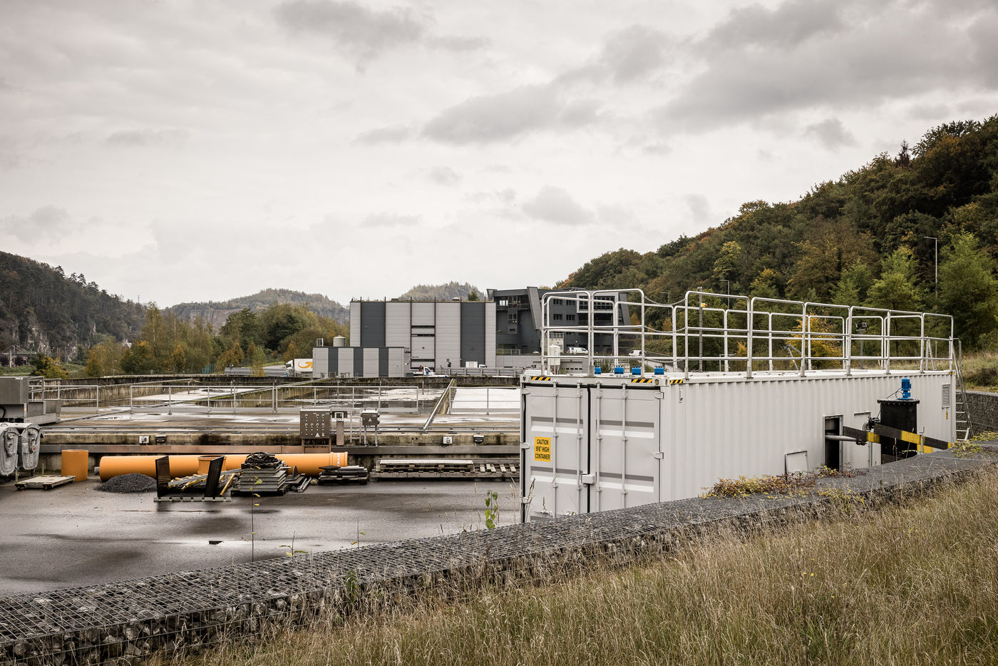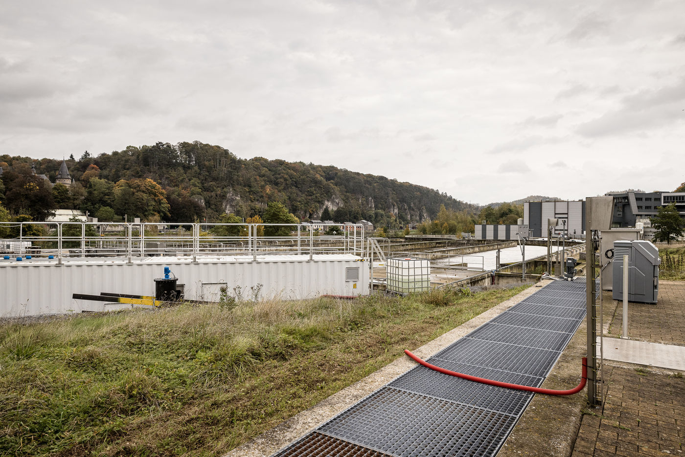 Namur, Belgium. 2021-10-20. Experimental site of BeFlow near the wastewater treatment plant on the Meuse river.