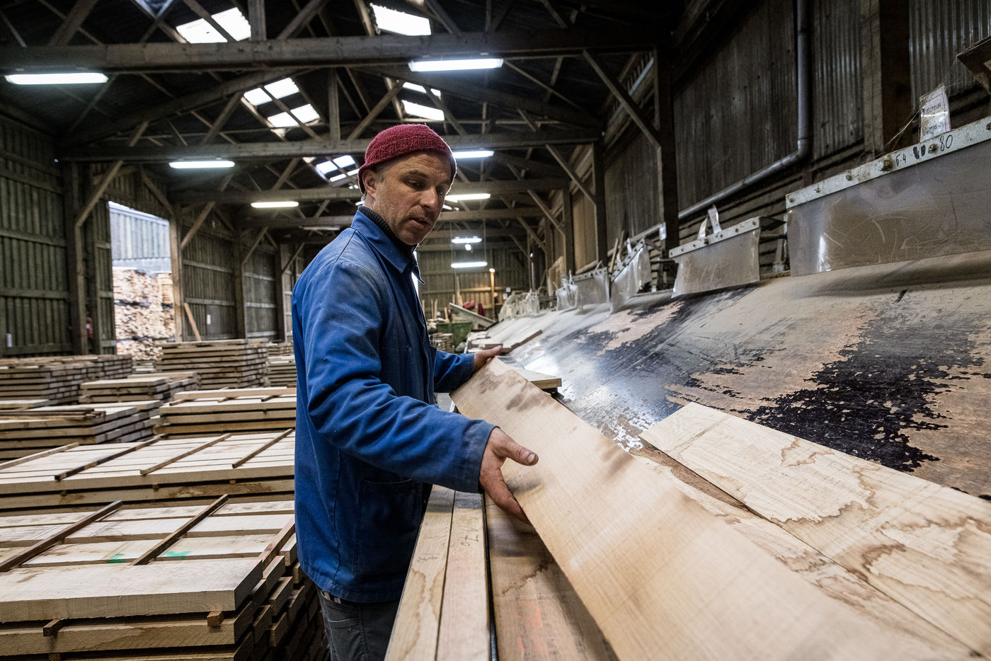Morville, Belgium. 2021-10-21. The Belgian wood market is in full crisis, the Chinese ogre has come to upset the European markets by coming to buy the majority of the raw wood stocks largely above the market prices. It also prevents local companies to get raw material. As it is the case here, at the Vica-Bois sawmill where the company is struggling to provide work for its 17 employees. Lack of wood as a consequence.