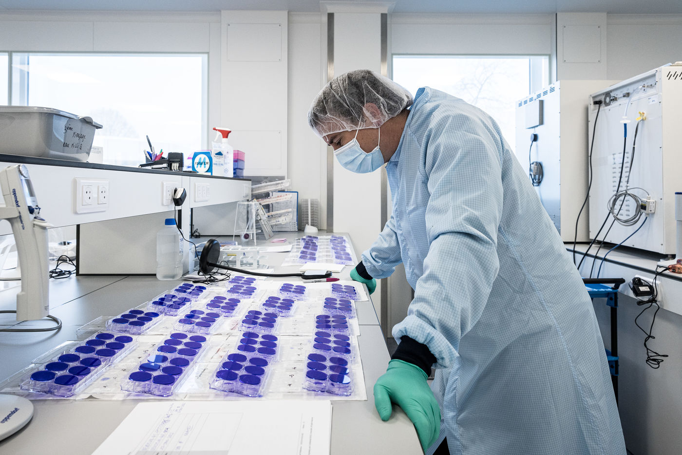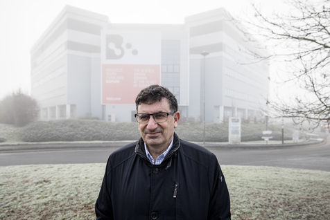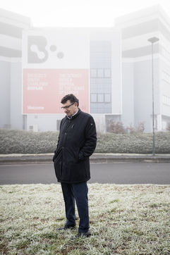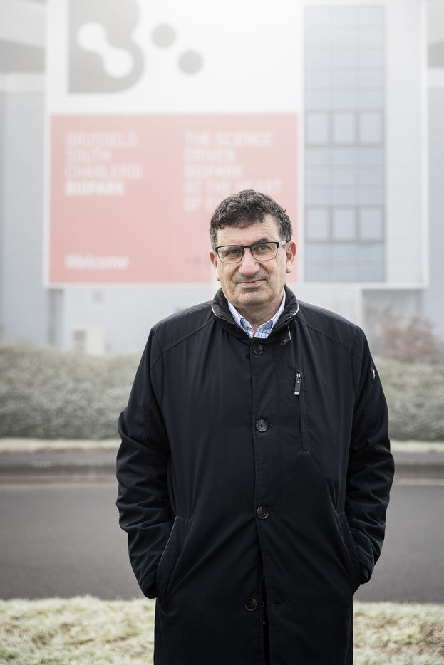 Gosselies, Belgium. 2022-01-25. Portrait of Bertrand Alexandre, CEO of the BioPark near Charleroi airport. Pictures illustrating the buildings specialized in Biotech.