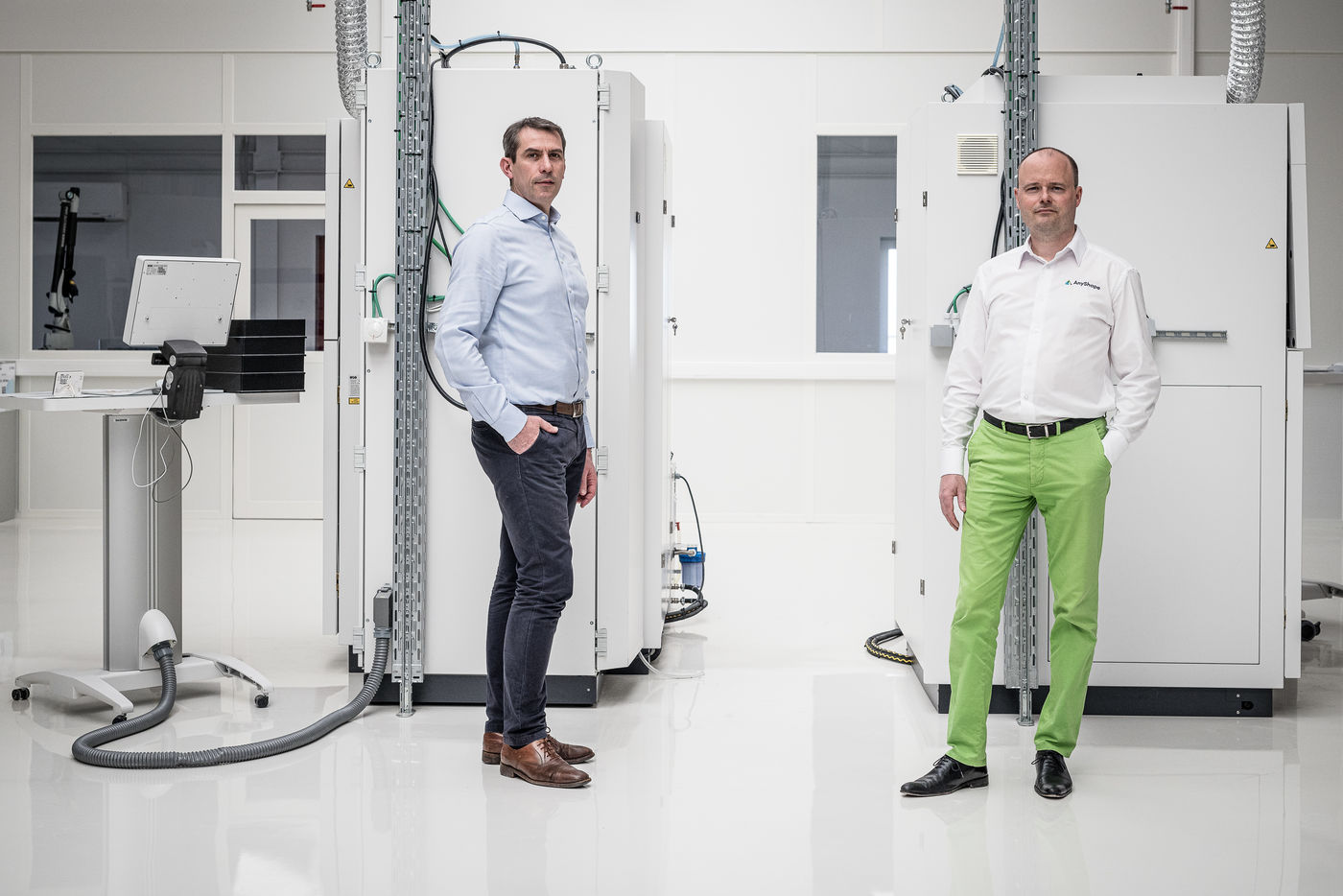 Villers-le-Bouillet, Belgique. 2022-03-21. Reportage au sein de l entreprise Any Shape, specialisee dans l impression 3D de toutes formes, que ce soit en plastique ou en acier. Portraits des deux CEO, Roger Cocle et Bertrand Herry.