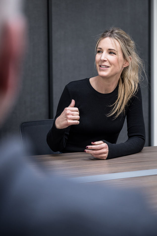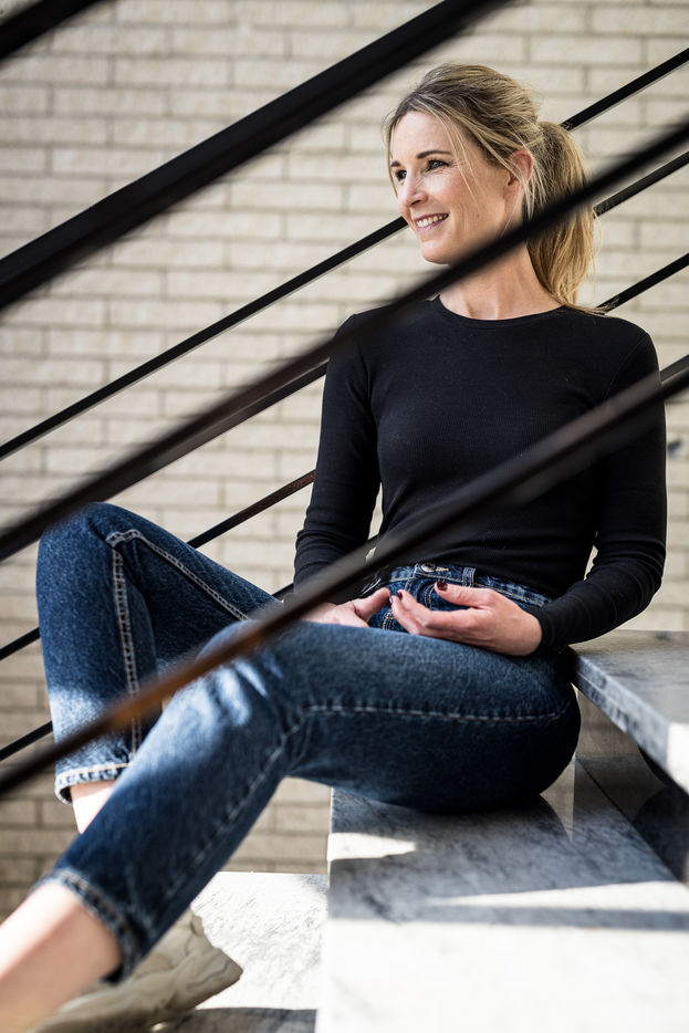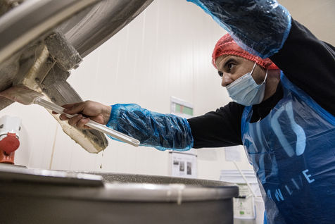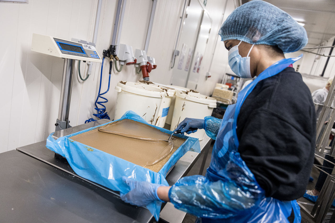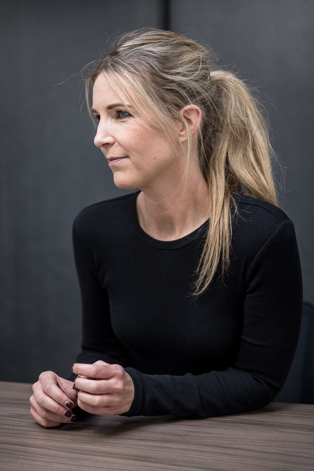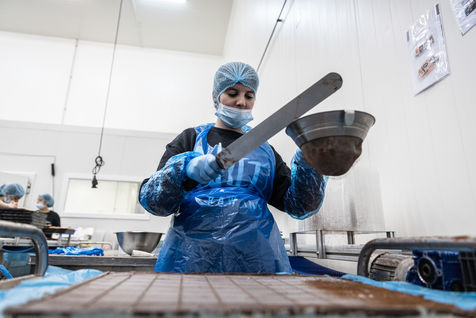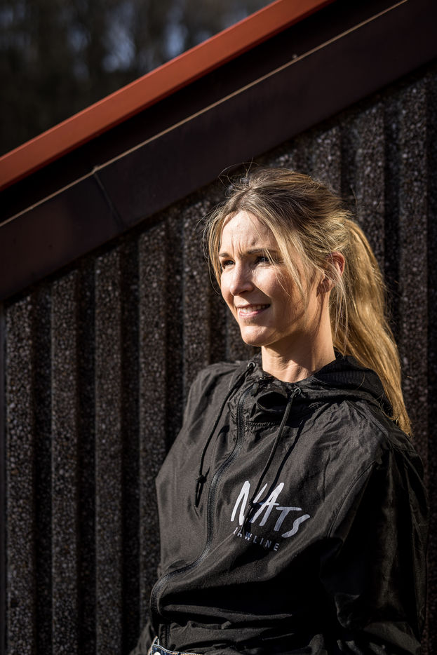 Oupeye, Belgium. 2022-03-22. Portrait of Nathalie D Harveng, CEO of Nats Rawline, a company specializing in vegan and gluten-free pastries. Her company now exports internationally with impressive growth.