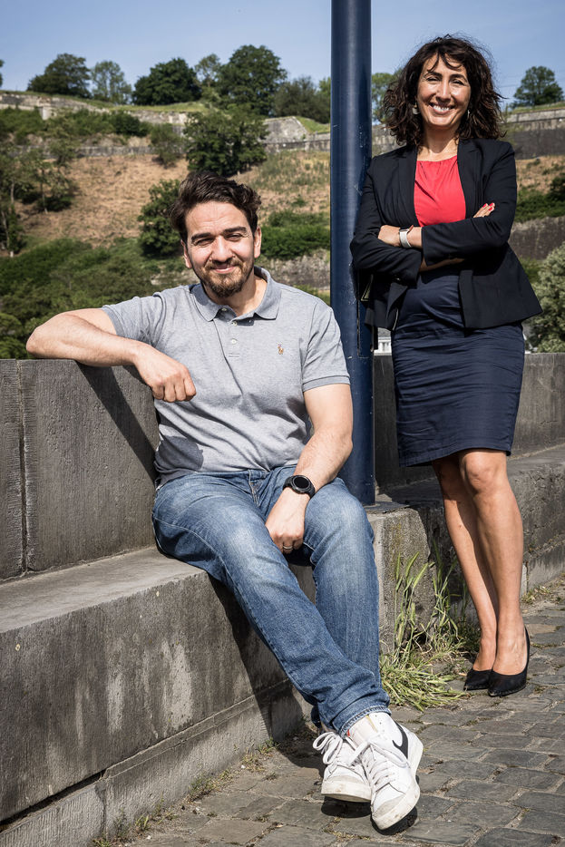 Namur, Belgique. 23 Mai 2022. Portrait de Christie Morreale, Vice-presidente du gouvernement wallon et ministre de l Emploi, de l Action sociale, de la Sante et de l Egalité des Chances et d Ibrahim Ouassari, fondateur et CEO de MolenGeek.