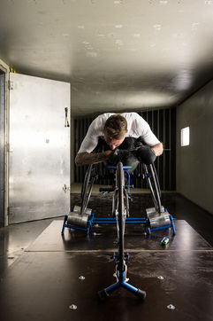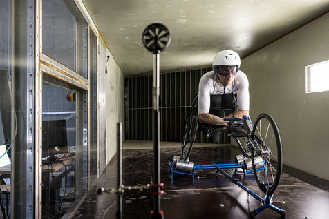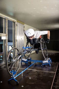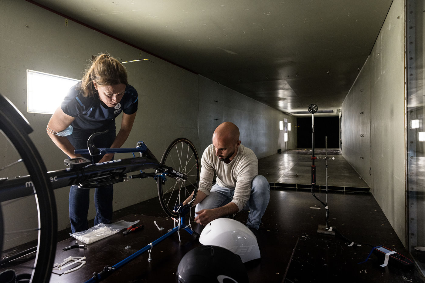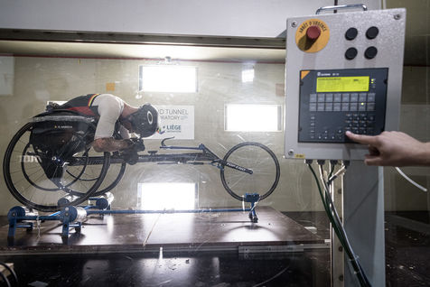 Liege, Belgium. June 14th 2022. Visit of the Wind Tunnel Lab in the ULiege premises where many athletes come to perfect their positioning in order to gain precious seconds. Roger Habsch, bronze medalist at the last Olympic Games in Tokyo was there to improve his training.