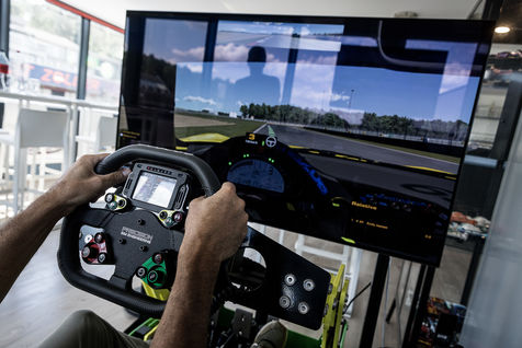 Zolder, Belgium. June 29, 2022. Circuit Zolder also hosts driving courses for amateurs. Here, a student is first trained on a simulator and then goes on to practice in real conditions on the circuit.