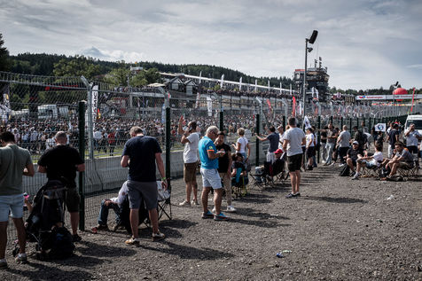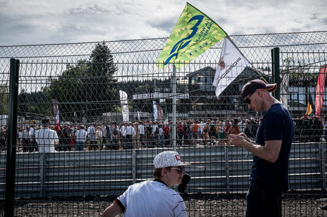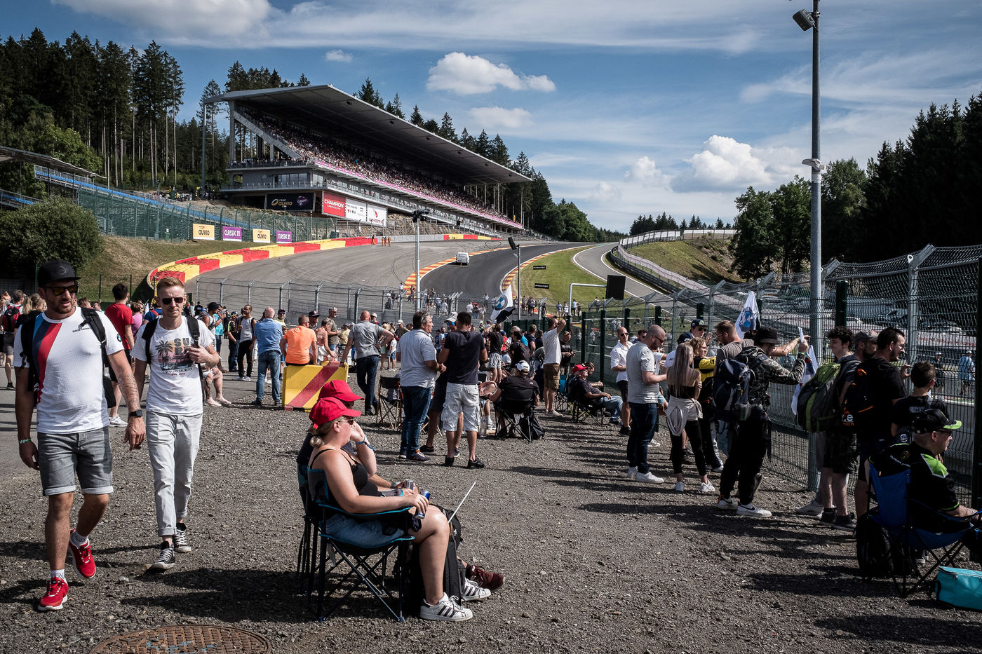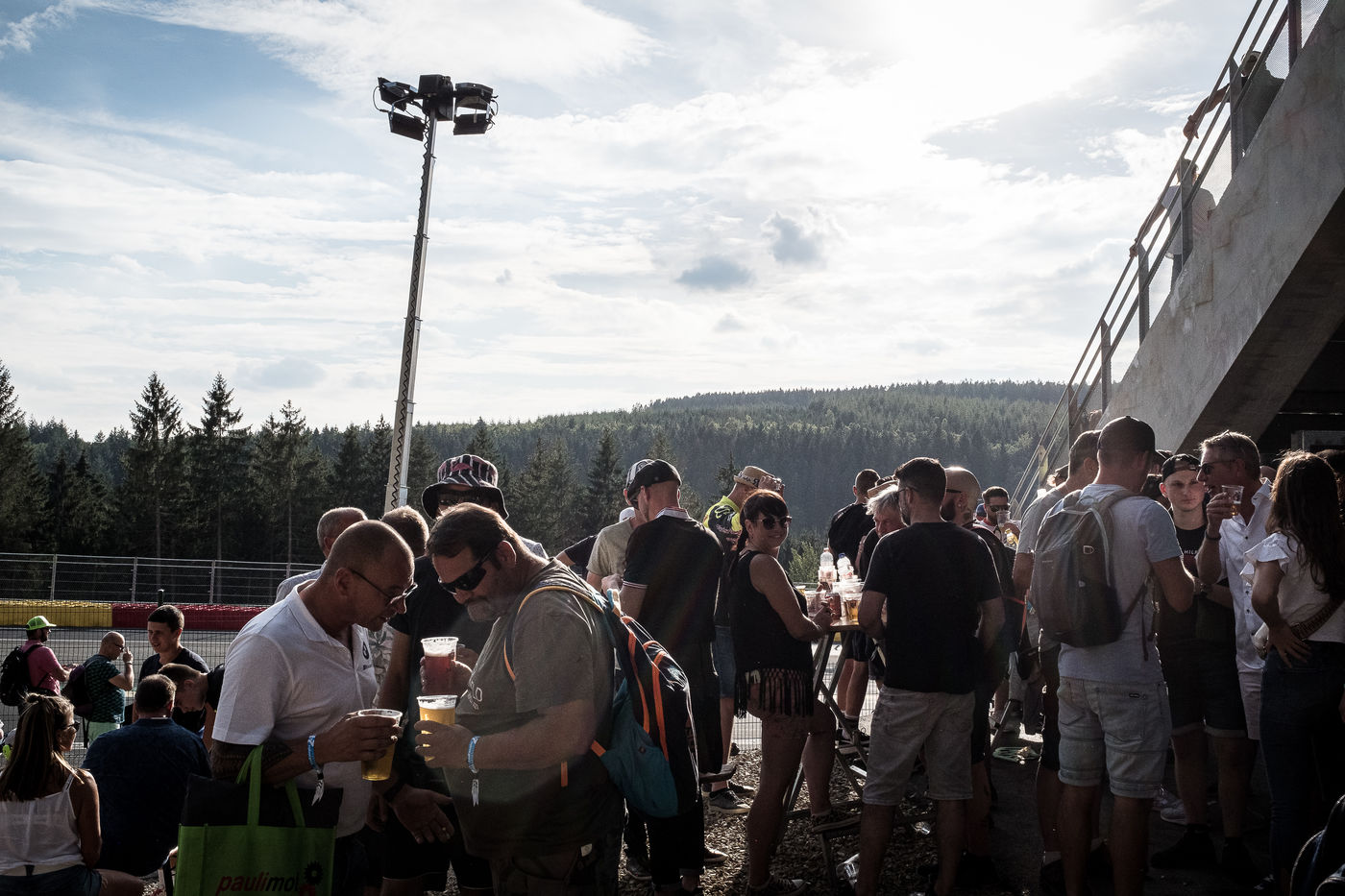 Spa, Belgium. 2022-07-30. Race atmosphere during the Total Energies 24h of Spa-Francorchamps. Thousands of spectators are there, including many supporters of Valentino Rossi, who is driving an Audi R8 for the WRT Team.