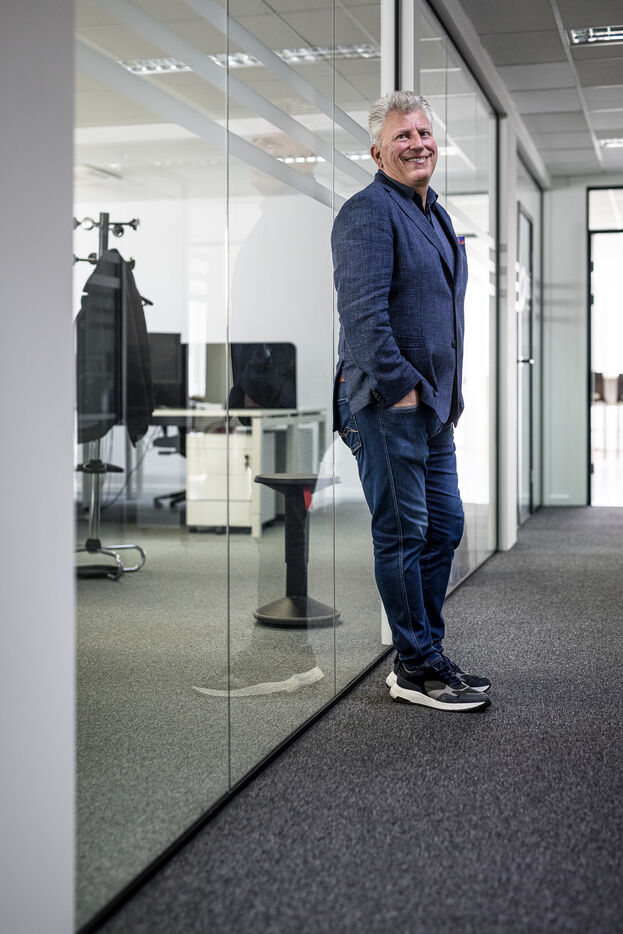Awans, Belgium. 2022-11-21. Portrait of Manuel Pallage, CEO of NSI Group in the company's premises near Liege.
