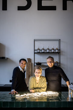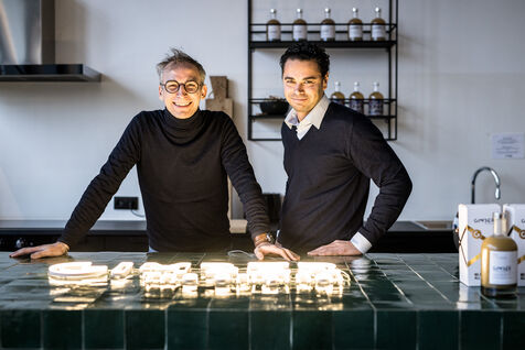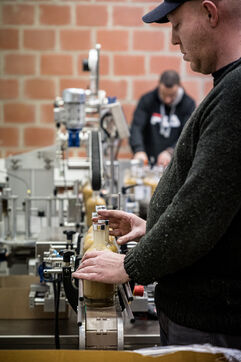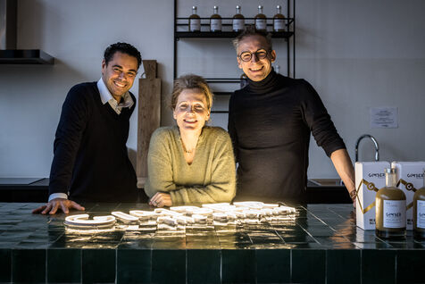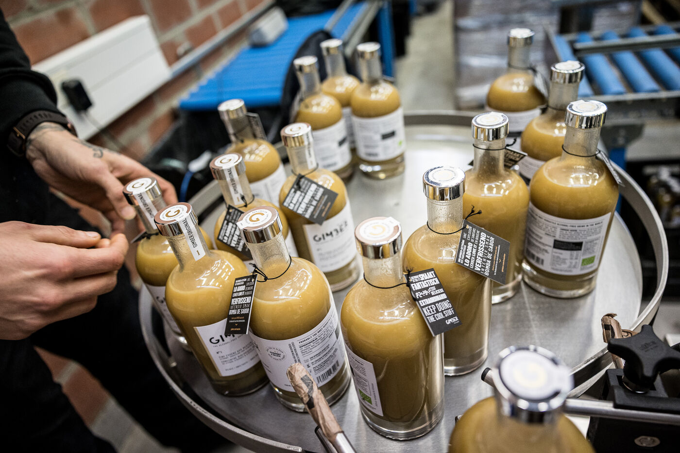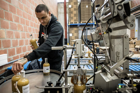 Tubize, Belgium. 2022-12-21. The Gimber company has started the production of a drink based on ginger. Visit of the company and its two co-founders: Sylvie Schollier and Dimitri Oosterlynck and the new CEO, Tim Kamanayo.