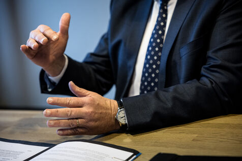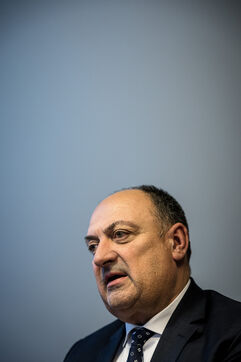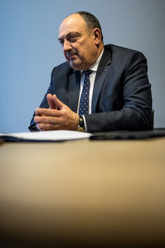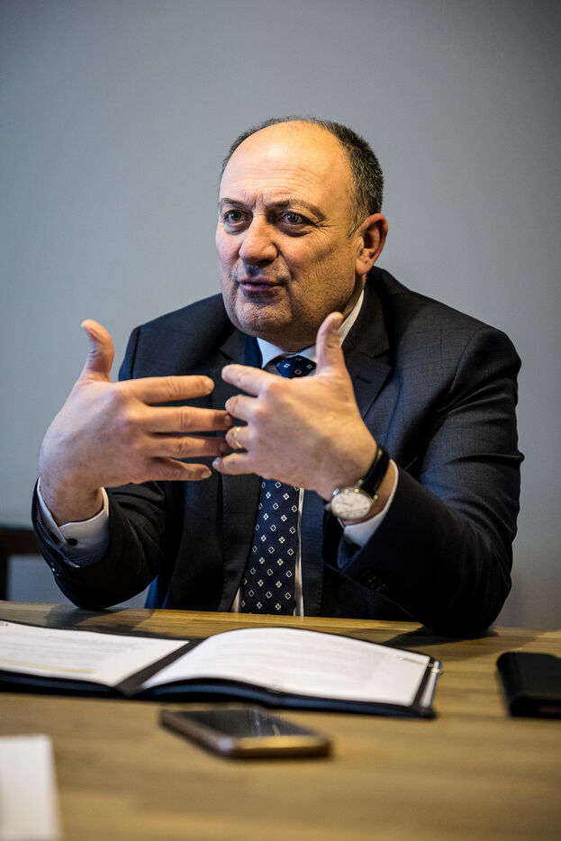 Namur, Belgium. 2023-01-19. Portrait of the Minister of Economy, Willy Borsus. Also vice-president of Wallonia and in charge of research and innovation, digital, agriculture, urban and regional planning.