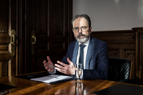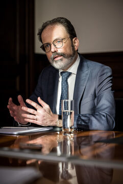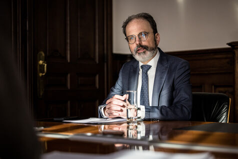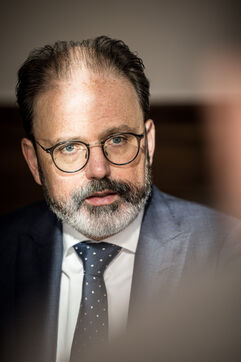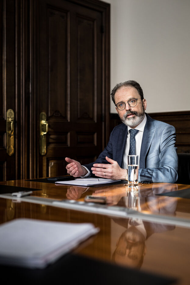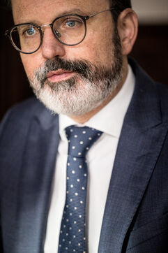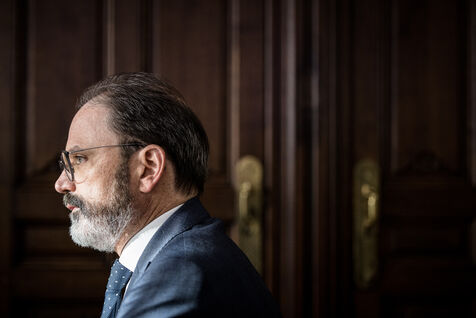 Herstal, Belgium. 2023-02-14. Portrait of Julien Compere, CEO of FN Herstal, a historical weapons company in the Liege region.