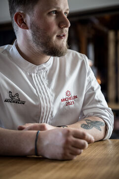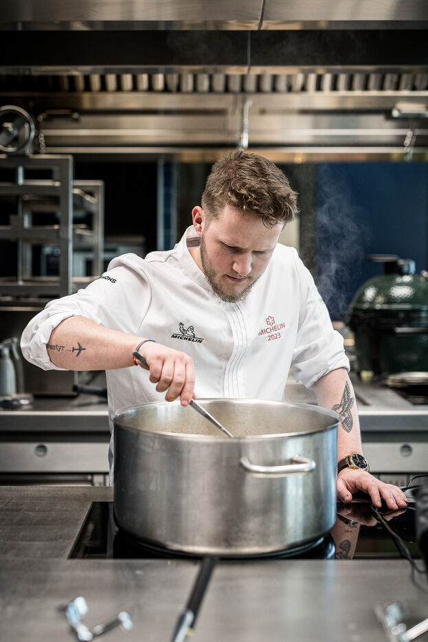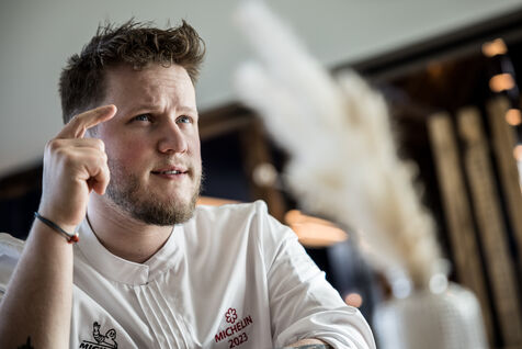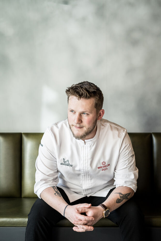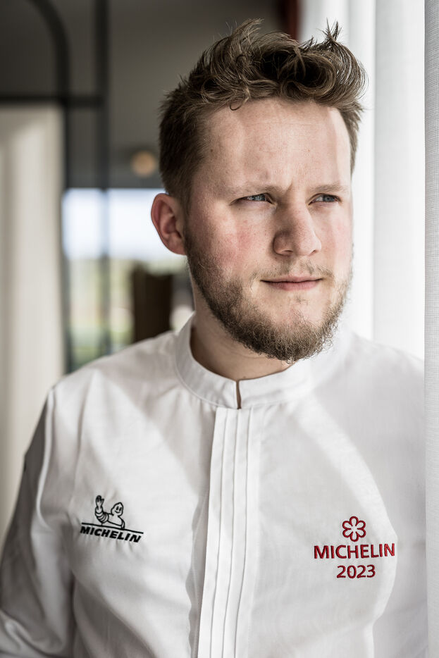 Spa-Francorchamps, Belgium. 2023-03-16. Portrait of Mathieu Vande Velde, chef of the restaurant "Le Roannay", who received a double award in the last edition of the Michelin Guide. After having been designated "Young Chef" of the year, Mathieu Vande Velde also received his first star.