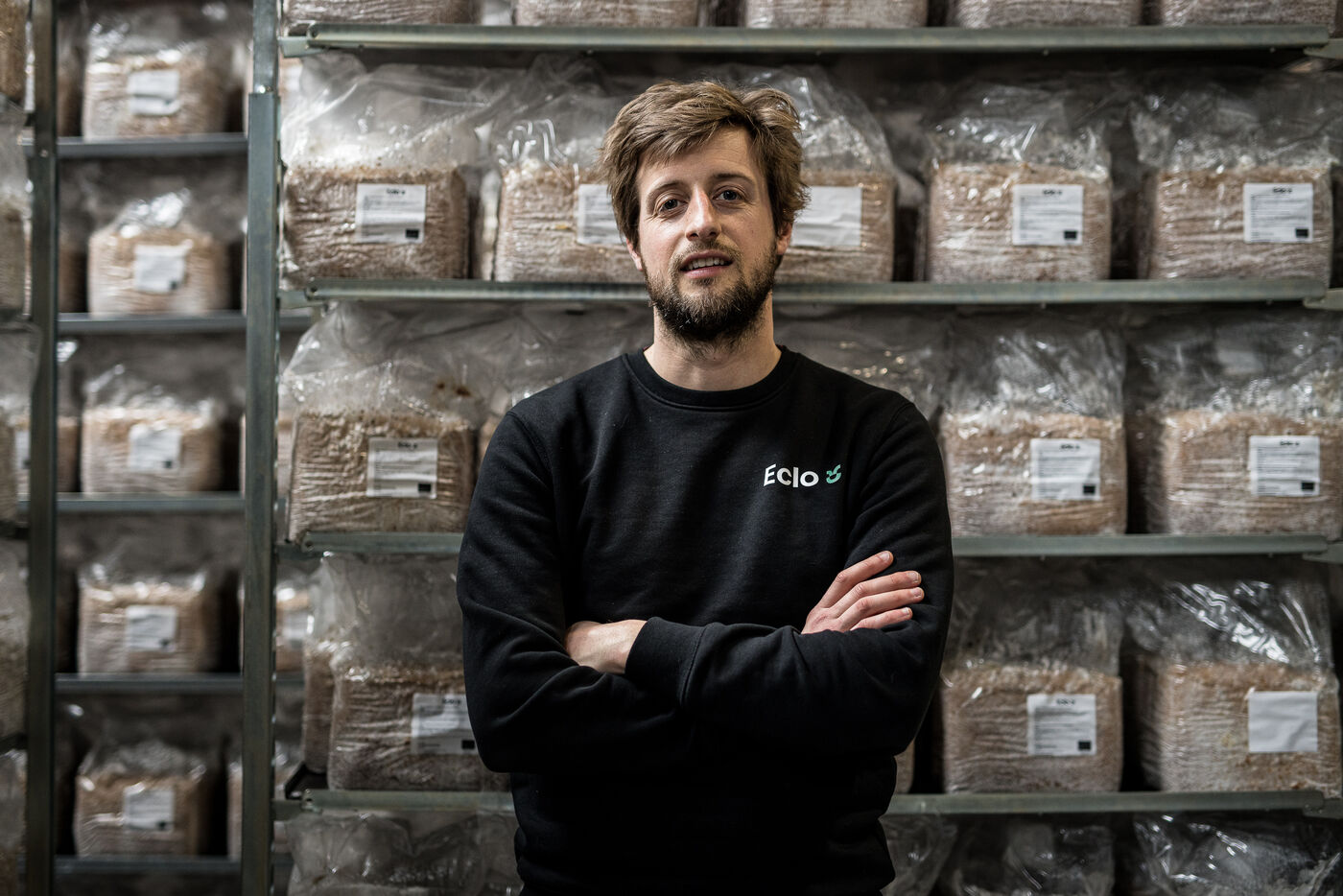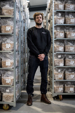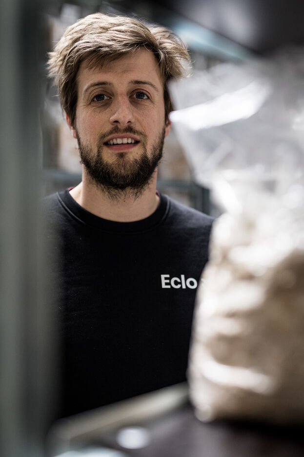 Villers-le-Bouillet, Belgium. 2023-04-24. Portrait of Hadrien Velge, CEO of the company Eclo. Located not far from Liege, it has just opened a factory for the production of substrate for the cultivation of mushrooms of different families.