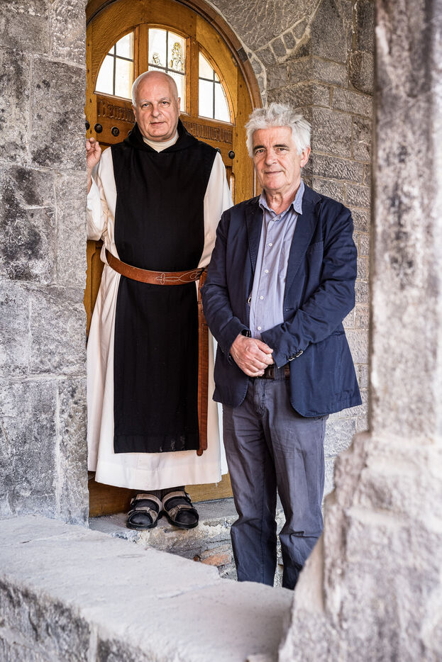 Rochefort, Belgique. 2023-06-06. Portrait de Frere Jean-Paul Wilkin, moine trappiste a l abbaye de Rochefort et Christophe Dedoncker, porte parole.