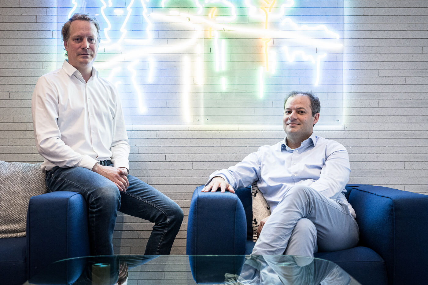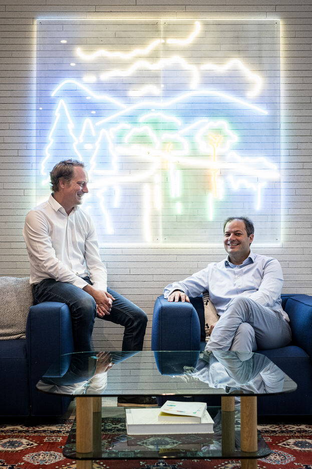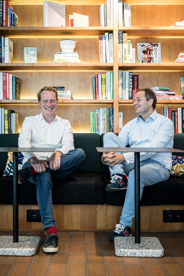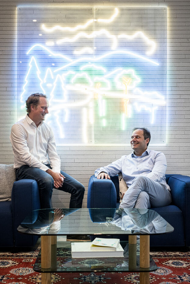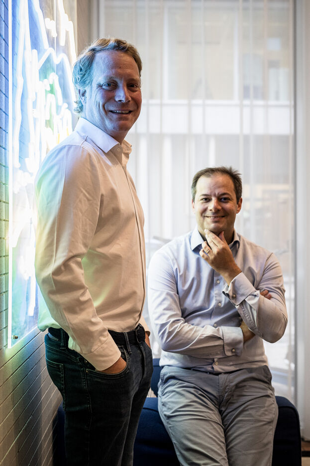 Brussels, Belgium. 2023-07-05. Portrait of Quentin Colmant and Jean-Charles Velge from Qover. The company announces a major capital increase.